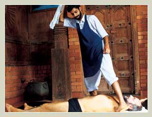 - массаж тела - массаж тела с травяными маслами или травяным порошком в течение 1 часа вручную, для того, чтобы тонизировать тело и улучшить кровообращение и т.д.;