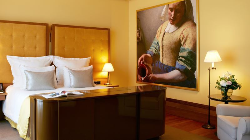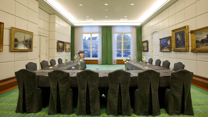 Едва гости переступают порог внушительного здания, как сразу же попадают в мир утонченной роскоши и блистательного великолепия: это замечательно ощущается и в лобби, украшенном картинами знаменитых голландских мастеров, громадными люстрами, пышными коврами и живописными панно, и в продуманных до мелочей интерьерах номеров, оформленных в классическом стиле. Здесь массивные кровати, легкие занавески, элегантная меблировка, роскошные ткани, зеркала и картины вместе со всеми разнообразными составляющими современного комфорта, создают непринужденную атмосфера праздника и уюта.