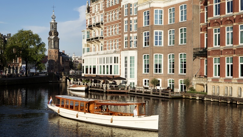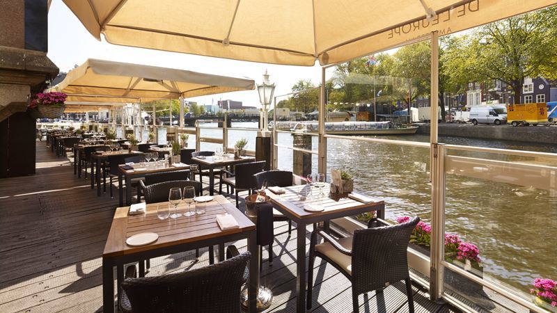 Романтичный отель De L’Europe расположен на берегу реки и открывает гостям изумительные виды на воды и Амстердам.