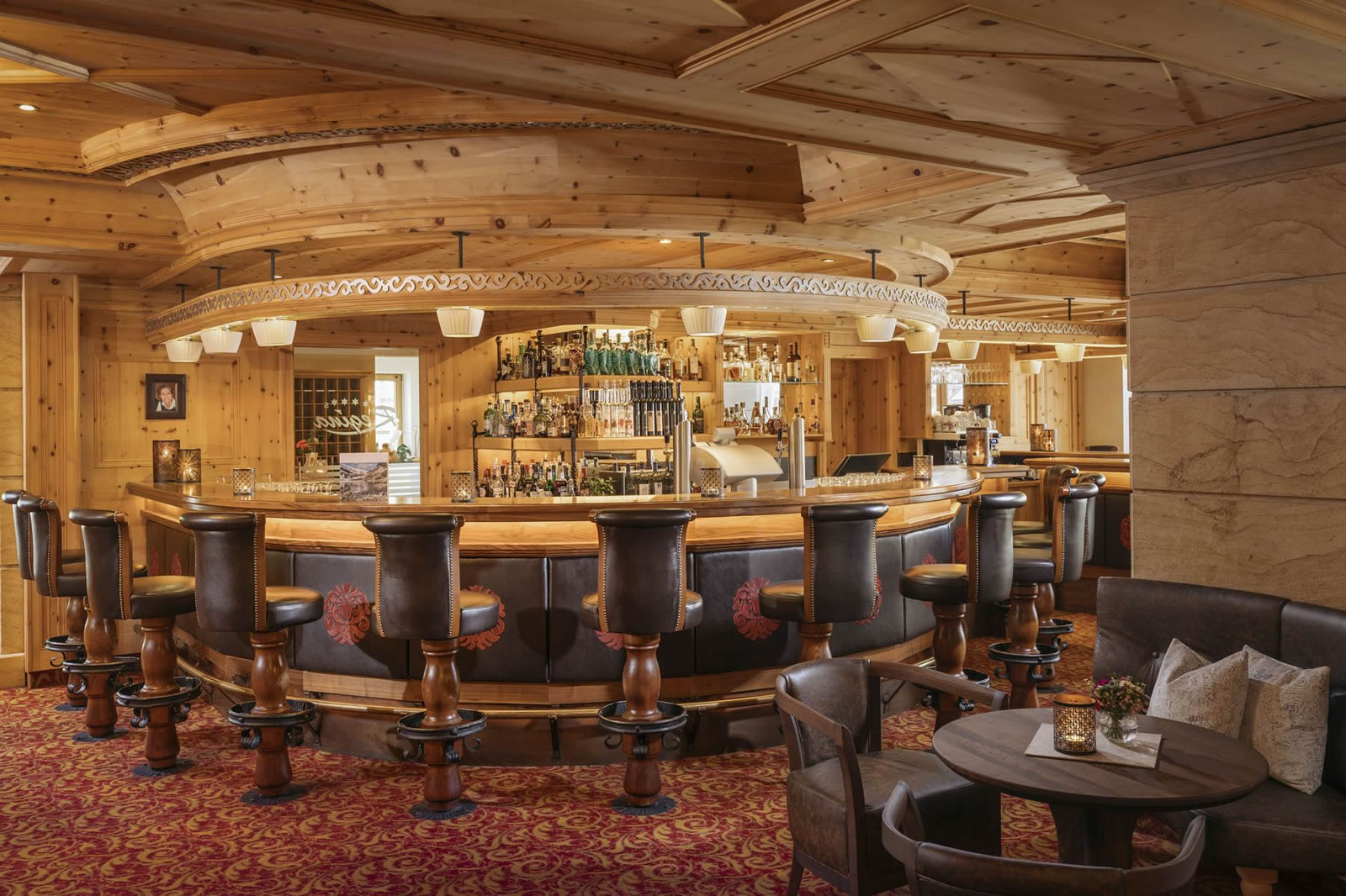 В интерьерах номеров отеля Regina преобладает альпийский стиль с современными элементами: отделка из деревянных панелей, мрамора и гранита, уютные камины, тирольские печи, дорогой текстиль и ковры, мягкое освещение, комфортная мебель и стильные элементы декора, включая фотографии и живопись.