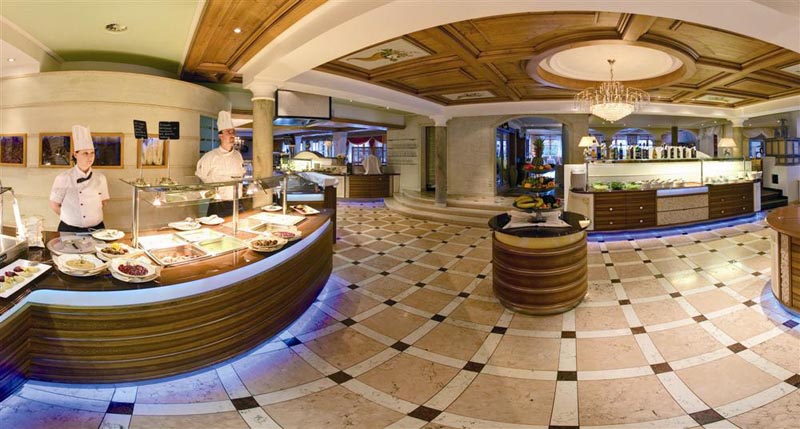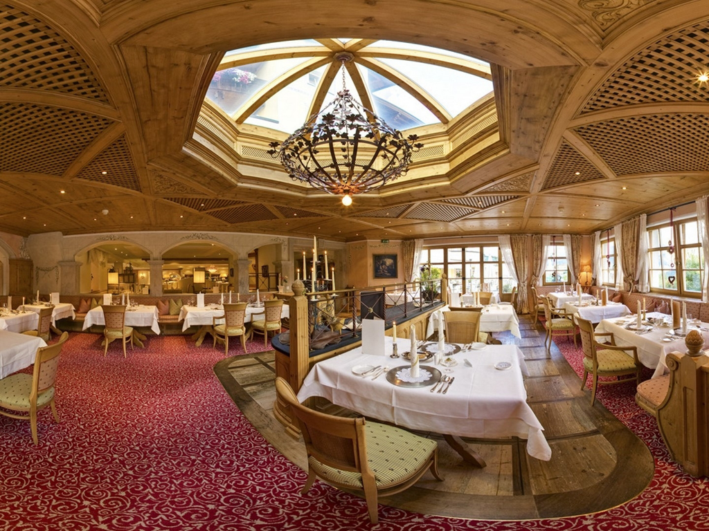 В гастрономическом ресторане отеля Wellness-Residenz Schalber гости смогут насладиться изысканными блюдами тирольской и интернациональной кухни, приготовленными из отборных продуктов с местных фермерских и охотничьих угодий. Ресторан разделен на 5 тематических зон, оформленных в индивидуальном стиле: Royal Room, Hunter's Snug Room, New Snug Room, Rose Room, Panorama Restaurant. Здесь также есть зона для завтраков "буфет", зона для ужинов "буфет", холл с камином, несколько лаунжей, бар, 2 террасы. Любители отличных сигар смогут расслабиться в сигарном лаунже с панорамным видом на горные пейзажи.