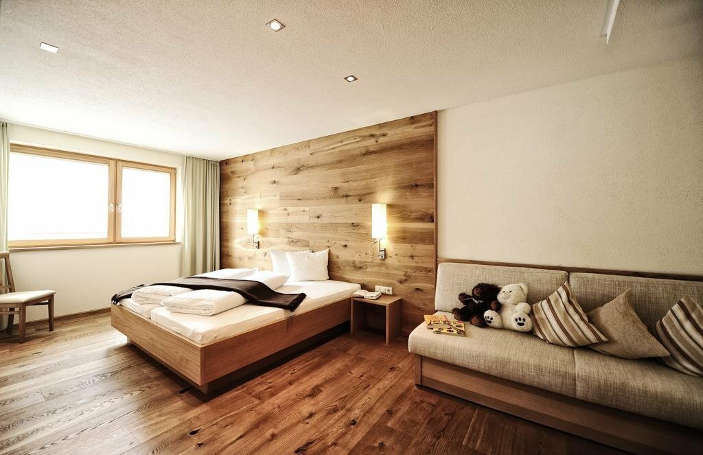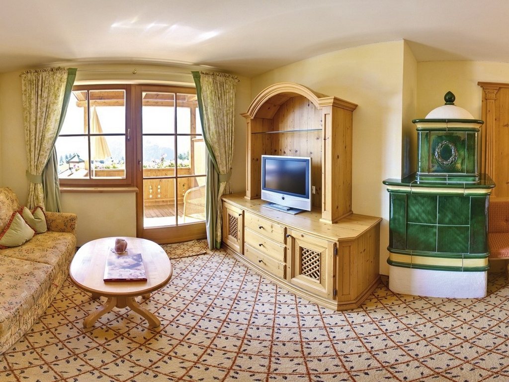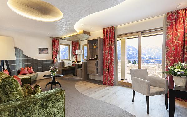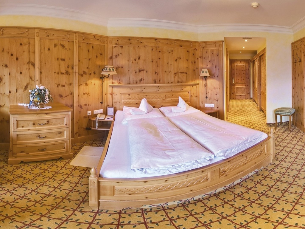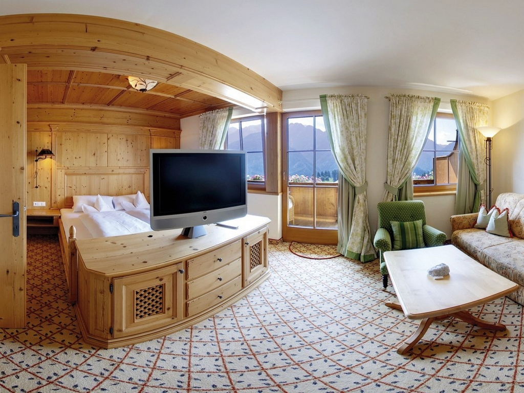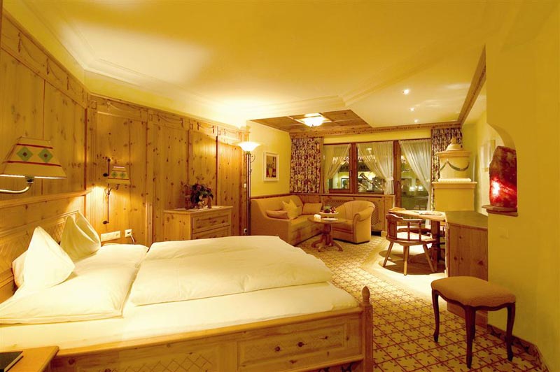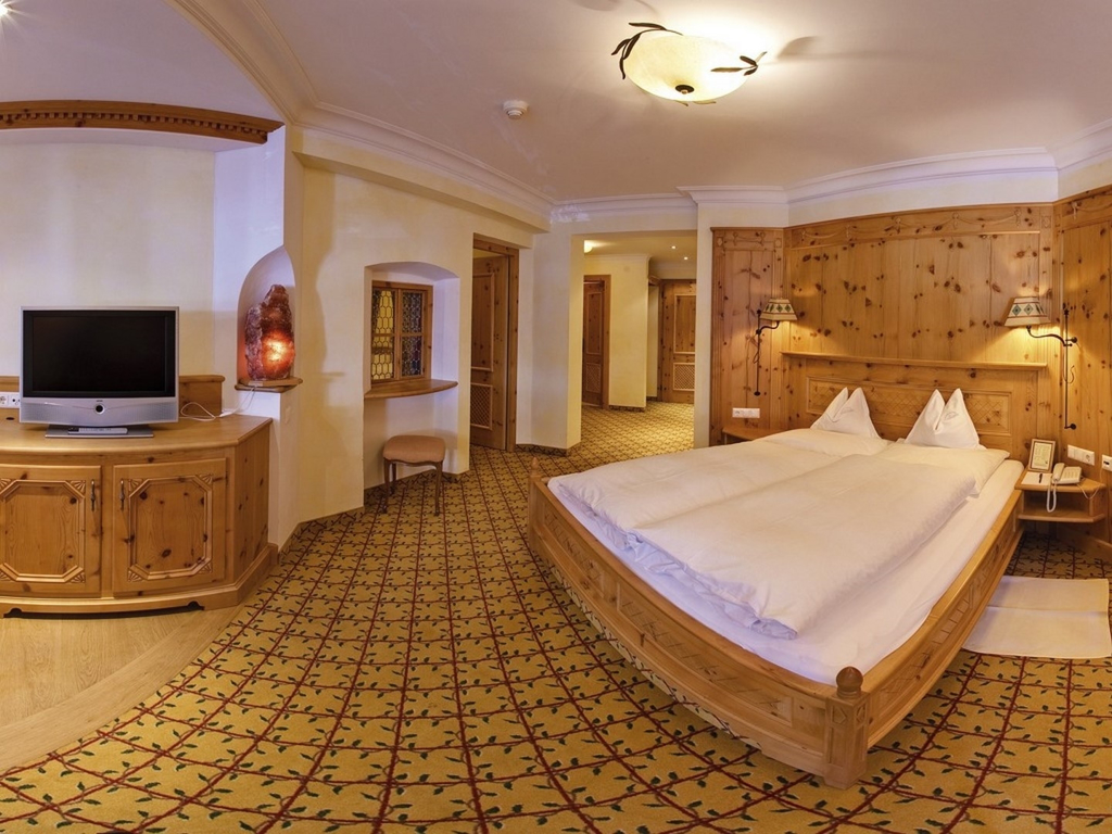 Family Suite Superior: 60 м2. Состоит из прихожей, главной спальни с гостиной зоной и обеденным столом с тирольской печью, второй спальни с двумя односпальными кроватями, двух ванных комнаты (одна - с ванной и отдельным душем, другая - с душем), балкона.
