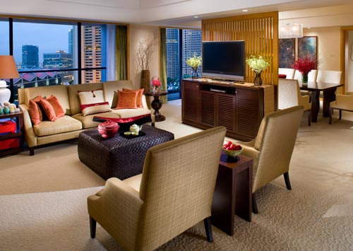 Oriental Suite (Общая площадь 161 м2) - номер с огромной гостиной, с обеденной зоной и собственной кухней, с собственным балконом, гардеробом и огромной ванной, с великолепным видом на город.