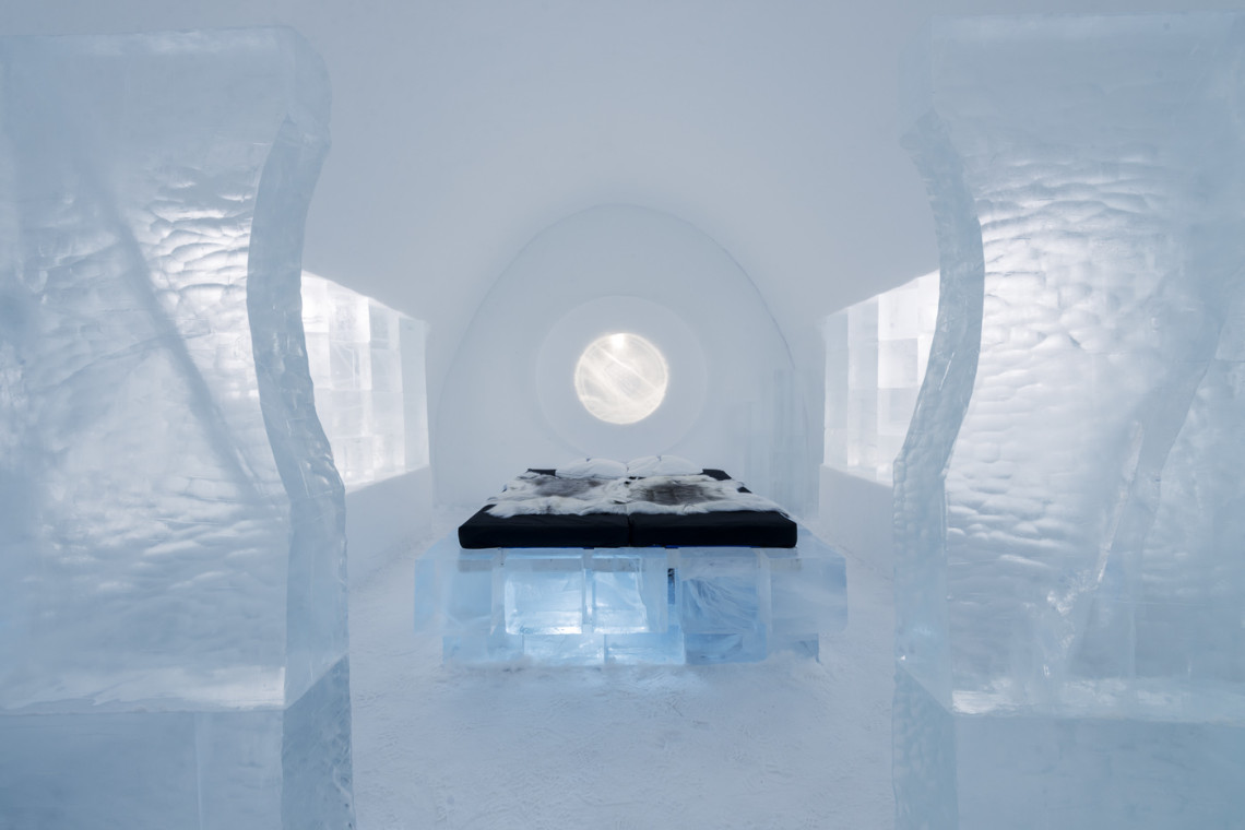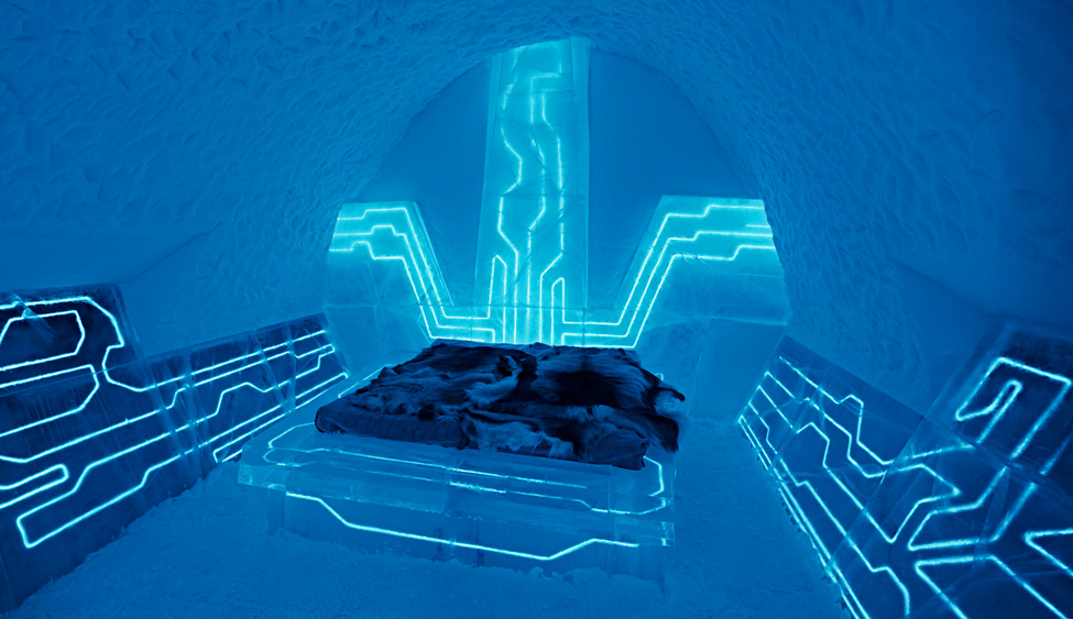 ICEHOTEL - это первый и самый большой в мире отель, построенный из снега и льда, который располагается в маленькой деревеньке Юккасъярви на севере Швеции. Каждую зиму более 50,000 туристов со всех уголков планеты съезжаются, чтобы полюбоваться северным сиянием и насладиться атмосферой дикой природы всего в 200-х км к северу от Полярного Круга. ICEHOTEL охватывает территорию в 5,500 кв.км и сооружен из 1,000 тонн льда и 30,000 тонн «снайса» («snice») – смесь снега и льда, которая укрепляет конструкцию. Естественно, что этот необычный отель не может работать круглый год. В середине апреля конструкция начинает таять, а уже в ноябре разворачивается активное строительство нового отеля.