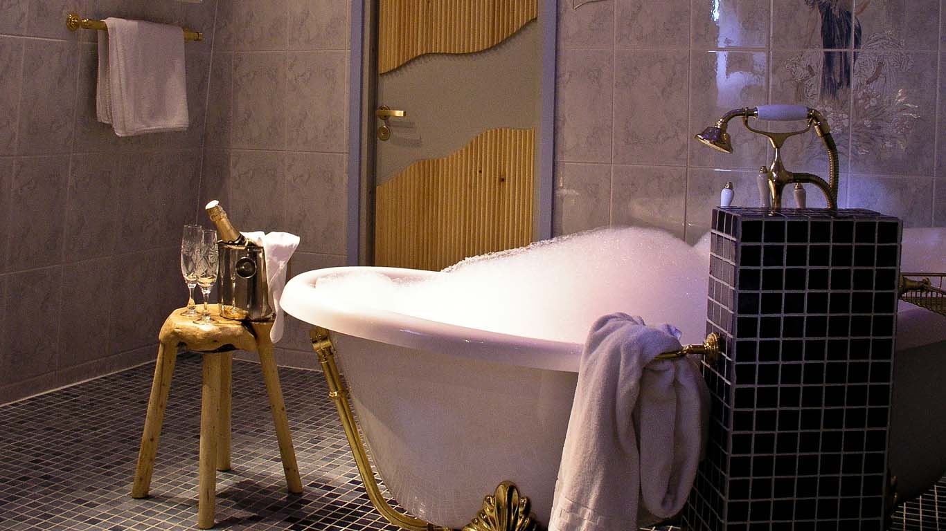 Для влюблённых пар, желающих провести романтический отдых, предоставляются шикарные апартаменты. В домике из сухостоя, размером в 60 кв.м., есть огромная ванная комната с ванной и баней. На уличной террасе находится джакузи, в которой Вы можете расслабиться как летом, так и зимой. <br>