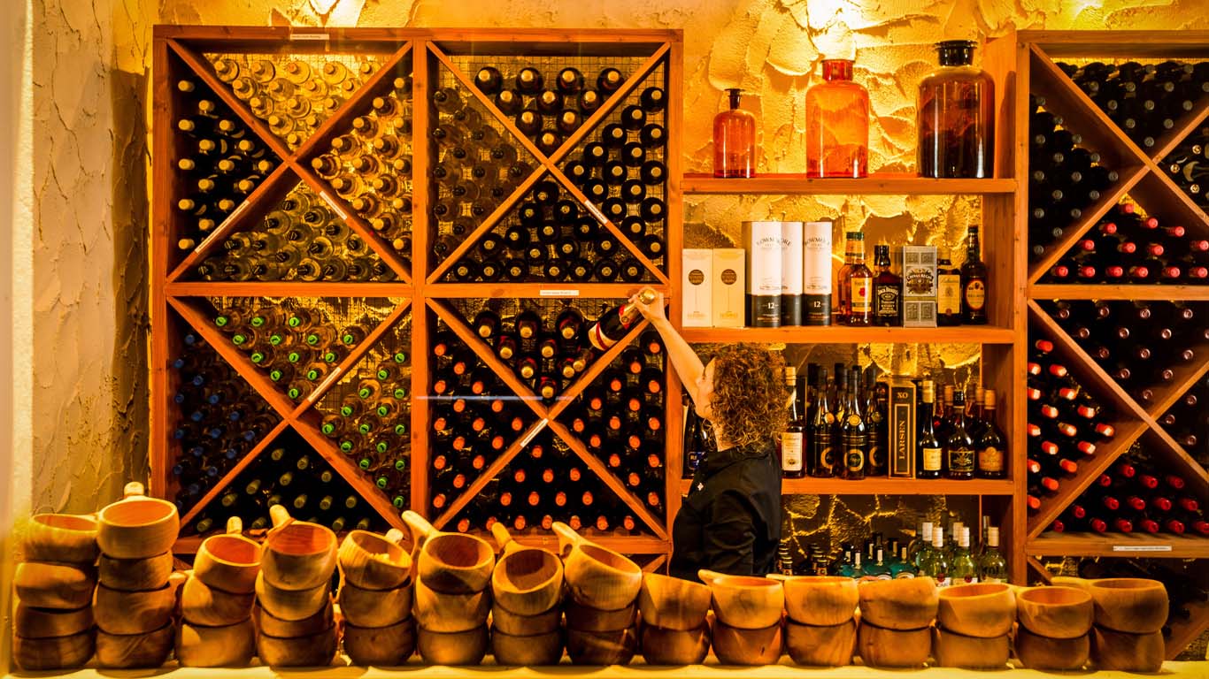 Основной пункт питания – это ресторан, построенный из сухостоя, который предлагает разнообразное меню с местными лапландскими деликатесами, а также азиатскую кухню. Также работает ледяной бар.