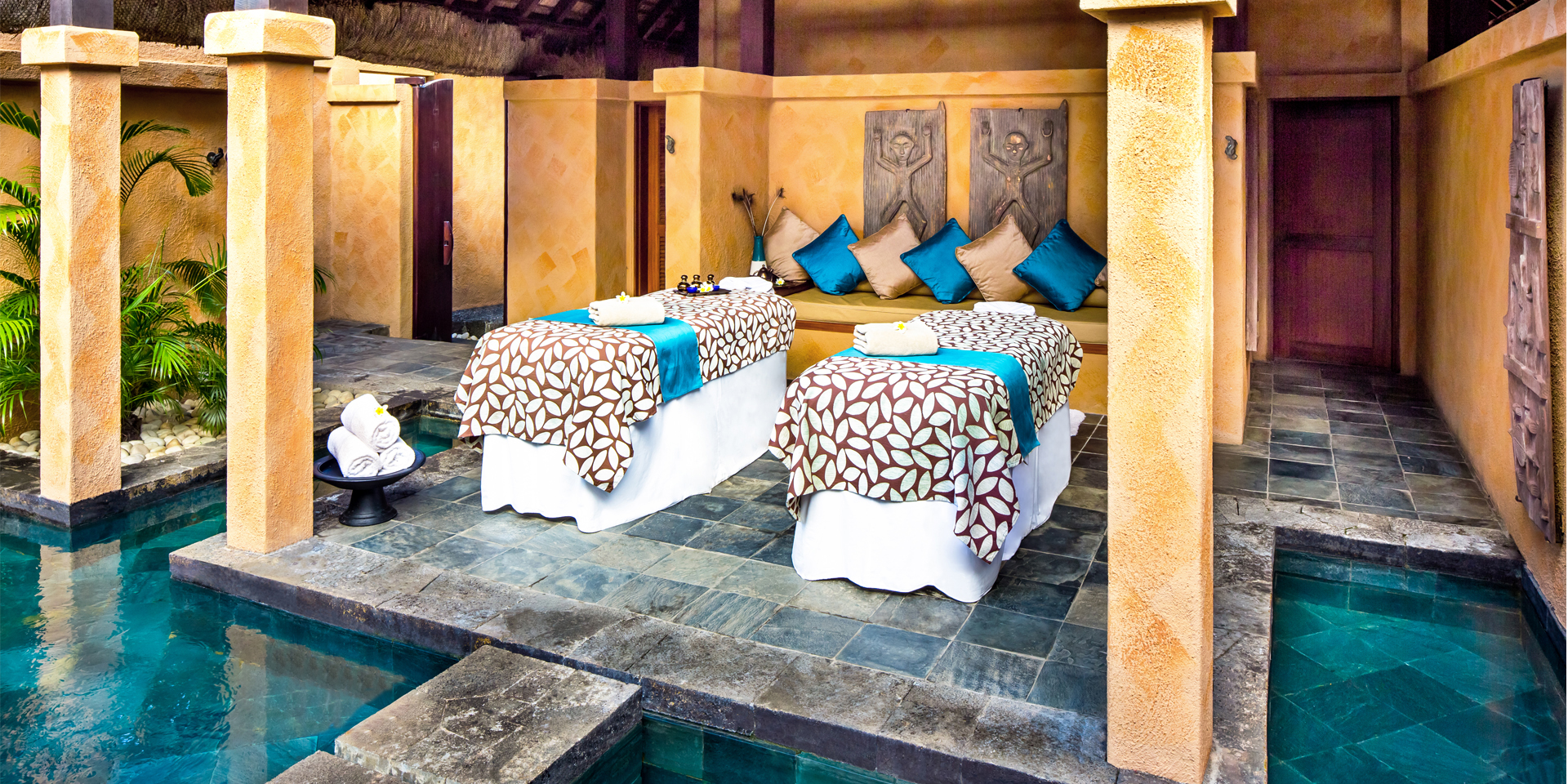 Royal Villa with Private Pool: роскошная вилла, расположенная в саду площадью 650 м2, включает гостиную, спальню с видом на океан, ванную комнату, гардеробную, террасу с обеденным павильоном и подогреваемым бассейном (55 м2), выходит на океан. Максимальное размещение - 2 взрослых + 2 ребёнка (0-7 лет) или 2 взрослых + 1 ребёнок (8-11 лет) (ставится 1 дополнительная кровать). Может соединяться с Luxury Pavilion или Luxury Villa with Private Garden. Гостям виллы предоставляются услуги батлера.