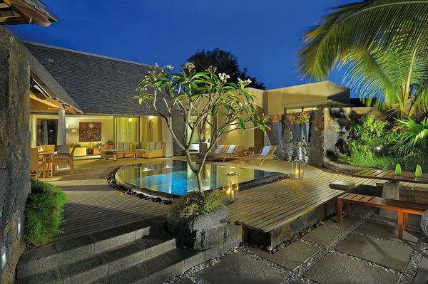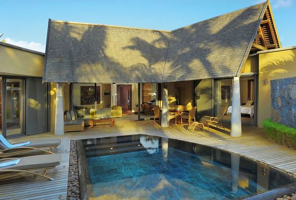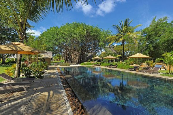 Pool Villa Three Bedrooms: 290 м2. Шикарные виллы, уединенно расположенные в саду и сгруппированные в стиле маврикийской деревни, выходят на бассейн и сад, каждая включает 3 спальни (одна — детская), 3 ванных комнаты (одна — с душем на открытом воздухе и ванной в беседке), гостиную зону, кухню, террасу с собственным бассейном, зоной отдыха, обеденной зоной, площадкой для барбекю и садом. Гостям виллы предоставляются услуги дворецкого. Максимальное размещение — 4 взрослых + 3 ребенка (0-17 лет).