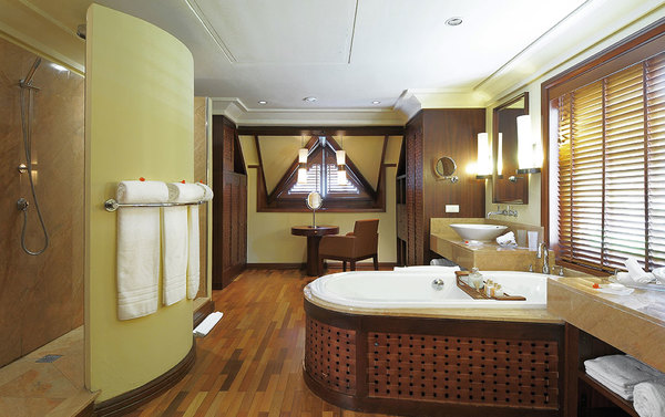 Deluxe Suite: 96 м2, расположен на 1 и 2 этажах южного крыла, состоит из спальни, гостиной, ванной комнаты с джакузи открытого плана, гостевой туалетной комнаты, балкона или террасы с видом на море. Может объединяться с Prestige Room.