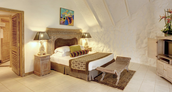 La Pirogue Suite (“Flamboyant” и “Bougainvillea”): 78 м2. Имеет уединенное расположение в северной части курорта, обращен на пальмовую рощу. Состоит из гостиной с зоной отдыха и обеденной зоной, спальни, ванной комнаты с джакузи и душевой, меблированной террасы.