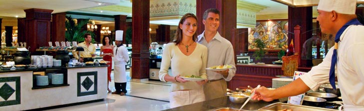 На ваш выбор предоставляется 6 тематических ресторанов с разнообразной кухней (гастрономический ресторан, японский, итальянский, рыбный, мексиканский, мясной гриль-ресторан). Не забудьте, что вы можете попробовать блюда в любом из ресторанов с заказом блюд по меню отеля Grand Bahia Principe Punta Cana.