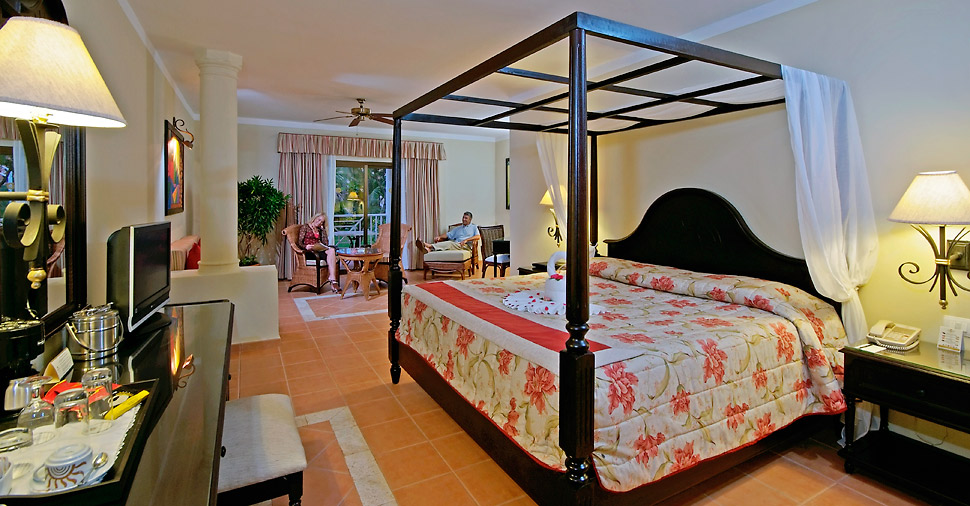 Посмотрите, что вас ждет в номере Junior Suite Deluxe: 2 кровати размера "full size" (1,35 м x 2 м) с балдахином, или 1 кровать размера "king size" (2 м x 2 м) с балдахином, гостиная с диваном-кроватью, полностью оснащенная ванная комната с гидромассажной ванной и отдельным душем, фен, кондиционер, потолочный вентилятор, халат и тапочки, телефон (звонки за пределы отеля за отдельную плату), будильник, плазменный телевизор со спутниковым телевидением, кофеварка, сейф, утюг и гладильная доска, терраса, обслуживание номеров 24 часа, услуги по вечерней подготовке номера ко сну, предоставление пляжных полотенец, выбор подушек, услуги мажордома, полный мини-бар с алкогольными напитками (мини-бутылочки). Пополняется ежедневно, неограниченное количество ужинов в специализированных ресторанах курортного комплекса (Grand Bahia Principe Punta Cana, Grand Bahia Principe Bavaro и Luxury Bahia Principe Ambar), привилегированное расположение прямо у моря, эксклюзивный бассейн в форме озера, 2 номера для людей с ограниченными возможностями, беспроводной доступ в Интернет (бесплатно 1 час в день на электронное устройство в холле отеля)