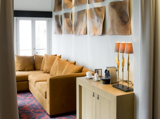 Studio: апартаменты с отдельным входом, расположенные на последнем этаже отеля, включают гостиную, обеденную зону, спальню, оборудованную кухню, ванную комнату, террасу с панорамным видом на историческую площадь Grand Place.