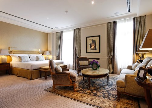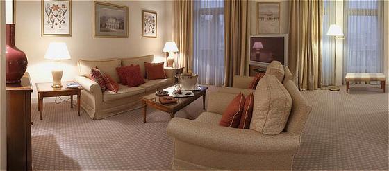 Executive Suite: 52 м2. Элегантный номер, оформленный в стиле Людовика XV, состоит из спальни, гостиной, ванной комнаты. Дополнительно в номере — телевизор с плазменной панелью, факс.