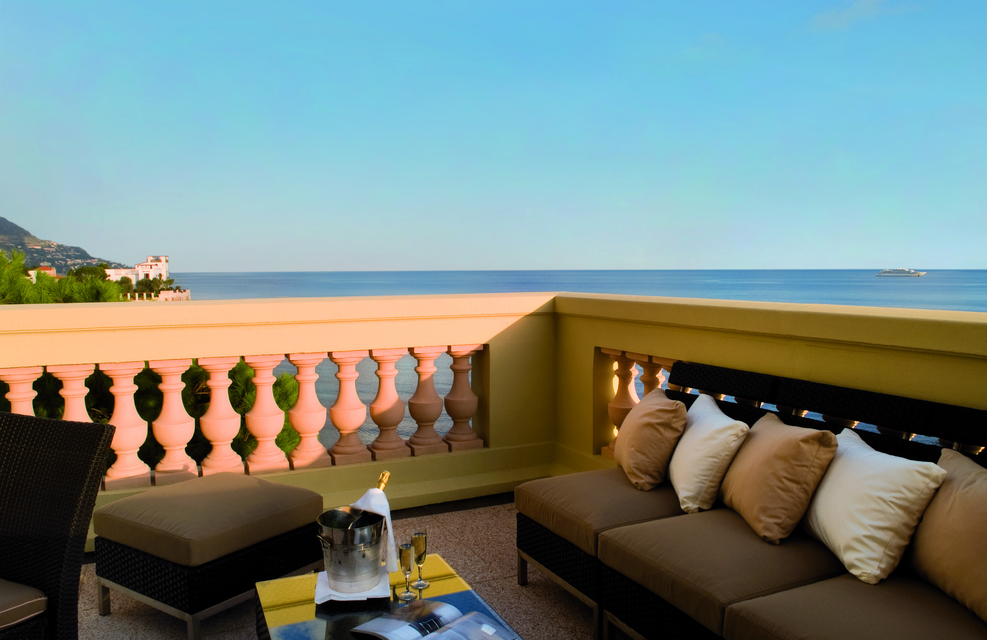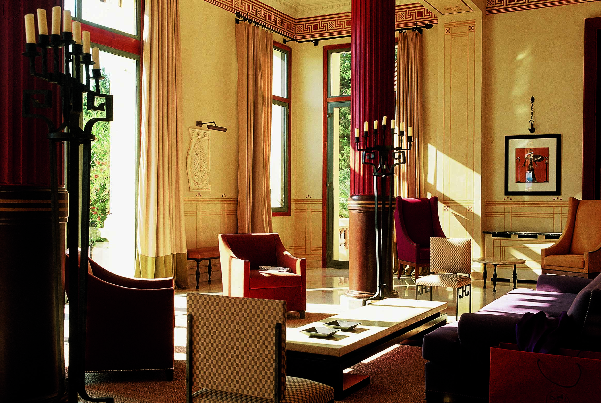 Junior Suite Sea View: — 45 м2. Расположен в основном здании, номер с видом на море и виллу Kerylos, включает спальню с кроватью King-size или двумя кроватями twin, зону отдыха, ванную комнату с ванной и душем, терраса (в номерах, расположенных на 1 этаже). Максимальное размещение — 3 взрослых или 2 взрослых и 1 ребенок.