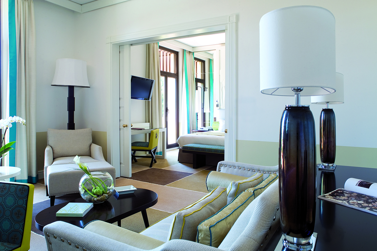 One Bedroom Suite Garden & Sea View: — 60 м2. Расположен в основном здании, номер с видом на море и сад, включает спальню с кроватью King-size или двумя кроватями twin, гостиную, ванную комнату с ванной и душем, терраса 22м2. Максимальное размещение — 3 взрослых или 2 взрослых и 1 или 2 ребенка. Возможно бронирование номера с двумя спальянми, в этом случае площадь номера составит 86 м2, добавится дополнительная терраса.