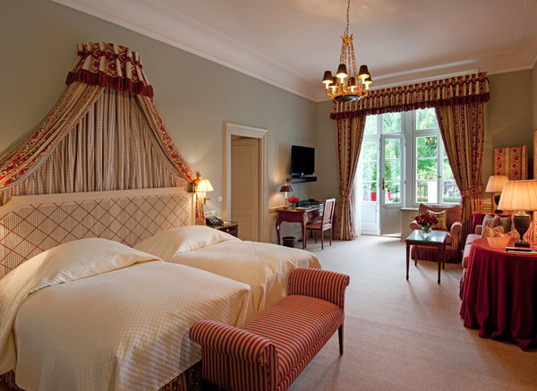 Deluxe Suite: — 94 м2. Состоит из гостиной, спальни, ванной комнаты, балкона с видом на парк и реку Оос.