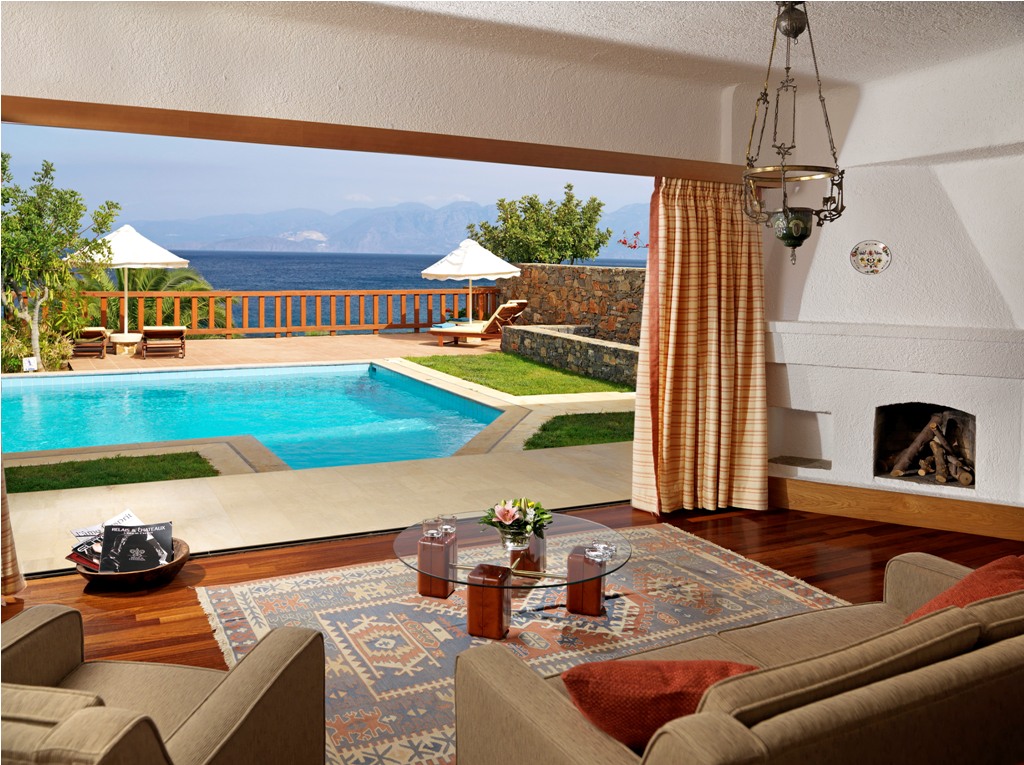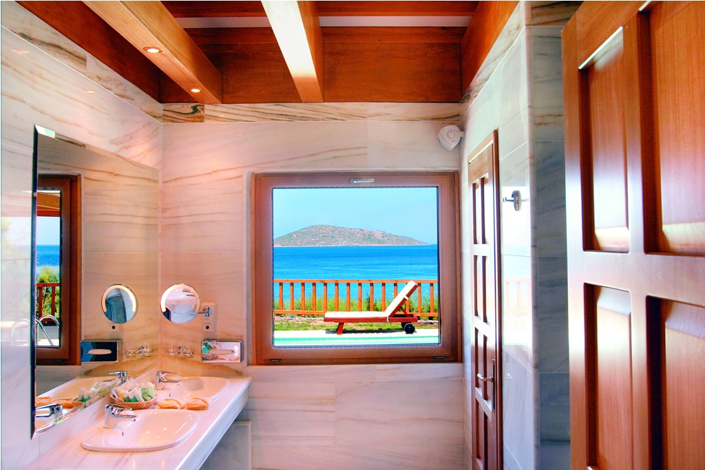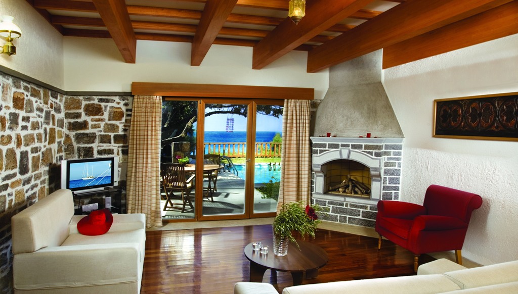 Отель построен на самом берегу изумрудного моря, посреди пышной зелени сада. Номера находятся в основном здании и в бунгало, которые стоят отдельно от него. В интерьере преобладают светлые тона и сочетают современный дизайн и греческий колорит. В номерах присутствует отделка из натуральных материалов, дерева и камня, роскошная мебель, необычные украшения, просторные балконы и террасы с красивейшим видом. Отель предлагает посетить СПА-центр, где вы найдете 23 процедурных кабинета, хаммам, тепидарий, частные процедурные кабинеты талласотерапии и парикмахерская, кальдарий и разнообразные СПА-зоны.