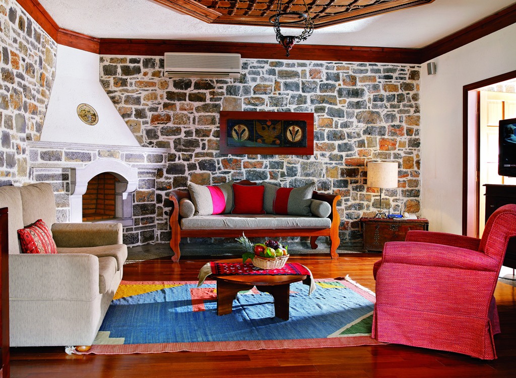 В отеле есть номера различных категорий, включая Twin Rooms, One-Bedroom Suites, One-Bedroom Superior Suites, Two-Bedroom Superior Suites, Deluxe Bungalows with Private Pool, Superior Bungalows with Private Pool, Two-Bedroom Superior Bungalows with Private Pool, Three-Bedroom Superior Bungalows with Private Pool, One Bedroom Royalty Suites with Private Pool, Prince Katreas Suite with Private Pool, Princess Ariadni Royalty Suite with Private Pool, King Minos Royalty Suite with Private Pool. В номерах, расположенных в основном здании и отдельно стоящих бунгало, — стильные интерьеры в светлых тонах, сочетающие современный дизайн и традиционный греческий колорит, с отделкой из натурального дерева и камня, элегантной мебелью, оригинальными украшениями, балконами и террасами с чудесным видом на Эгейское море и живописные сады.