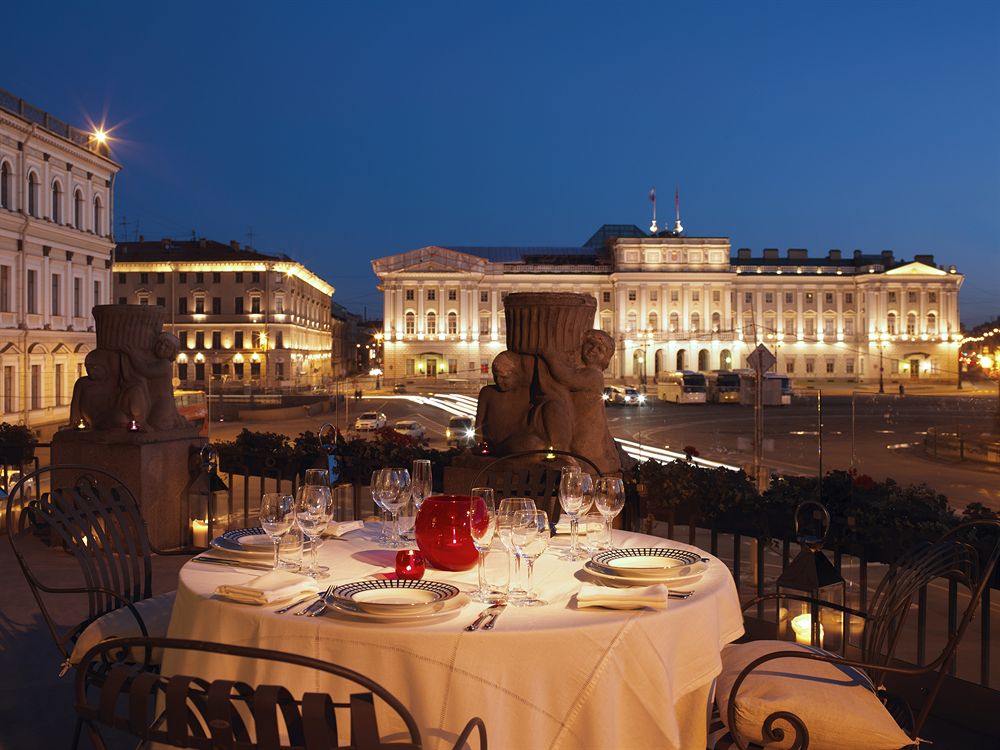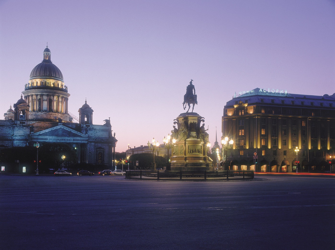 Отель расположен в самом центре Петербурга. На площади перед отелем возвышается Исаакиевский собор. В нескольких шагах от гостиницы находятся главные достопримечательности и магазины города: Эрмитаж, Медный всадник, Петропавловская крепость, Юсуповский дворец, Невский проспект.