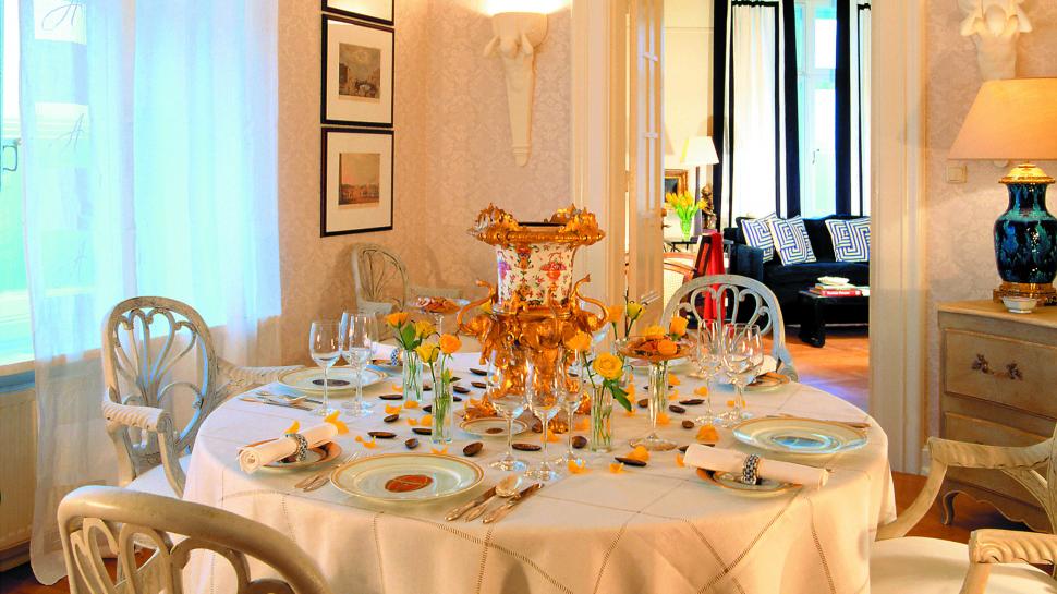 Tsar Suite: от 310 м2, из окон элегантных апартаментов Tsar Suite, расположенных на шестом этаже здания, открывается незабываемый вид на Исаакиескую площадь и Собор. Этот просторный люкс состоит из гостиной, столовой, трех спален, имеет кухню и тренажерный зал. Стильный, индивидуально разработанный дизайн от Ольги Полицци создает атмосферу уюта и роскоши, в отделке использованы натуральные материалы: льняные портьеры и покрывала, декоративные подушки с вышивкой, паркетные полы, мрамор. В номере-люкс есть три ванные комнаты, отделанные итальянским мрамором. К услугам гостей натуральные косметические средства ETRO, махровые халаты и тапочки. Гостевые ванные комнаты - стандартного размера. Основная ванная комната очень просторная, оформлена в индивидуальном стиле и оборудована душевой кабиной для двоих.