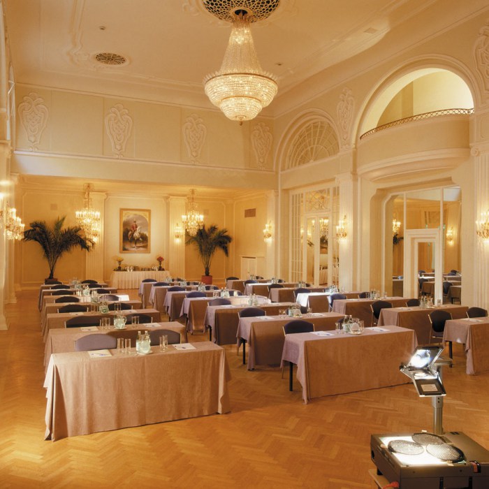 Отель располагает помещениями, которые могут принять до 450 гостей - «Зимний сад» и «Бальный зал». Также есть 5 переговорных комнат и Бизнес центр.