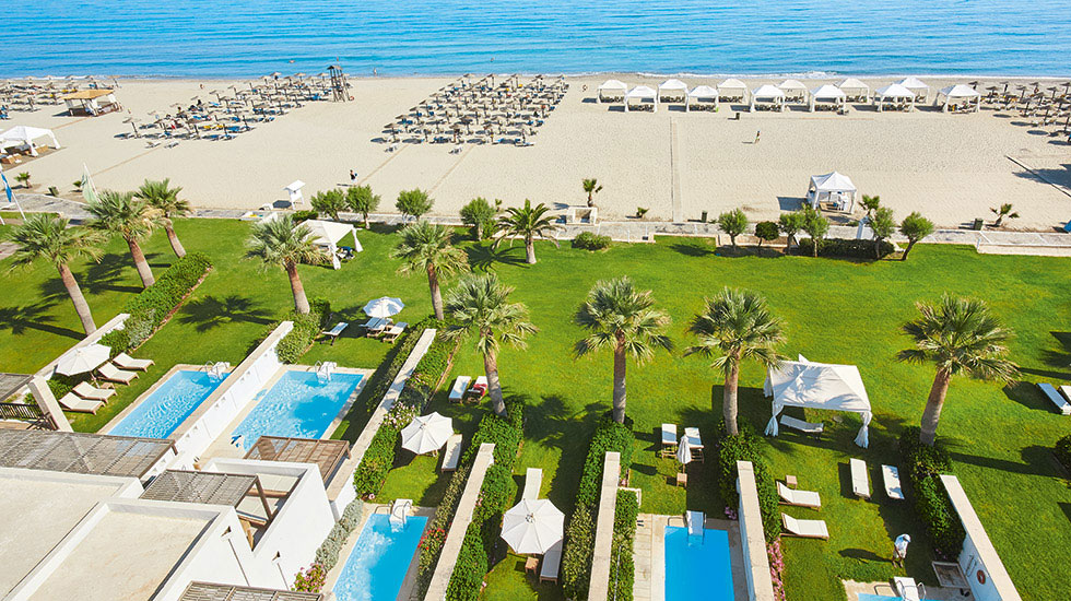 Комплекс Grecotel Creta Palace занимает 10 гектаров живописного берега острова Крит с просторным золотистого песка пляжем. Отель включает основное здание, виллы и бунгало. Территория отеля очень зеленая - все постройки окружены садами. Интерьеры помещений Grecotel Creta Palace представляют сочетание изысканной роскоши и стильного современного дизайна. Инфраструктура впечатляет разнообразием услуг: великолепный СПА центр, центр водного спорта, бассейны с морской и пресной водой для взрослых и детей, всевозможные спортивные развлечения, клубы для детей и подростков, многочисленные рестораны и бары, представляющие различные кулинарные направления и отменные блюда, приготовленные из органических продуктов с критской фермы Агреко, яркие вечерние шоу-программы, отличные возможности для деловых и торжественных мероприятий, модные бутики и множество других первоклассных услуг.