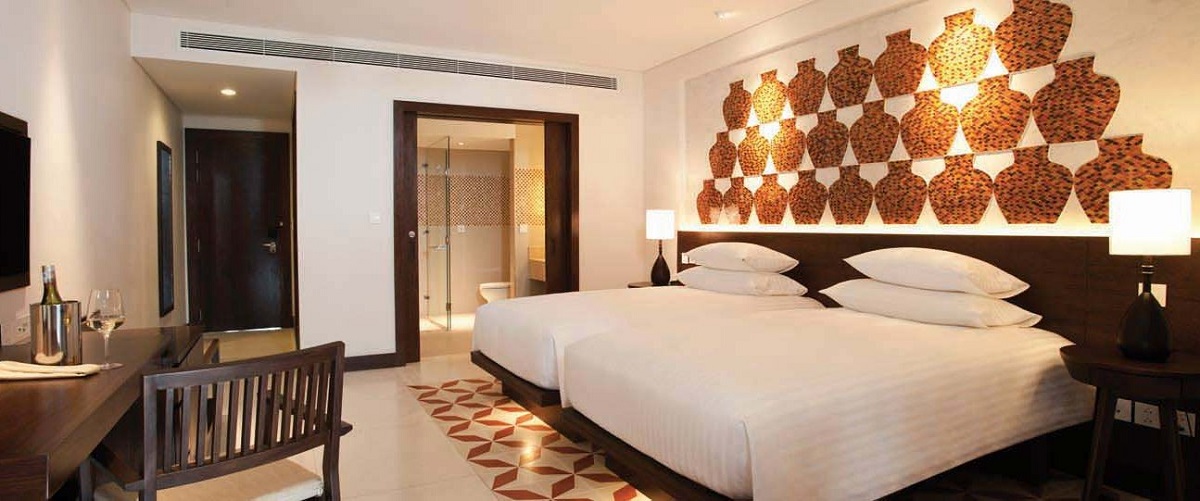 В номерах 2 одинарные кровати или 1 king-size, мини-бар, рабочий стол, кондиционер, телевизор, фен, тапочки и халат.