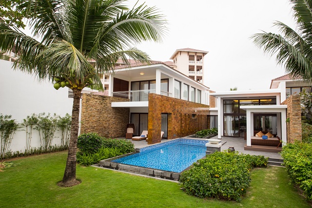 Vinpearl Resort & Villas - это отель 5*, который имеет в своём распоряжении 200 номеров и 39 вилл. Есть 2 ресторана, 2 бара, кафе, 5 бассейнов, спа. Архитектура отеля принадлежит стилю эклектика: в нем соединен современный дизайн и черты архитектуры Индокитая начала ХХ века. Вид на море, сад и Горы Пяти Элементов позволит почувствовать атмосферу традиционного Вьетнама, а панорама на развивающийся город, стоящий чуть дальше, даст ощутить дух настоящего, настроение людей сегодня.