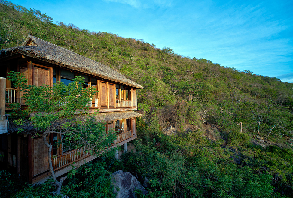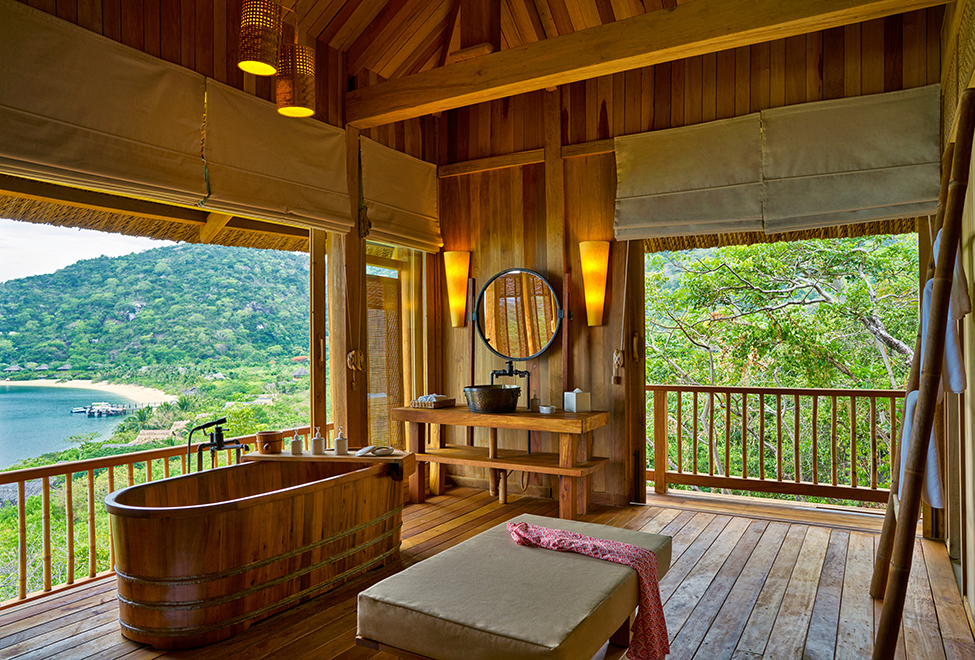 Виллы расположены на скалах возле моря, что создаёт ощущение того, что вы отгорожены ото всех и отдыхаете на острове с белым песком. Горный ландшафт, расстояние между виллами создают ощущение приватности. Дизайн отеля призван по-настоящему передать дух Вьетнама: в отделке номеров используется дерево (даже ванна), а стиль местный классический.