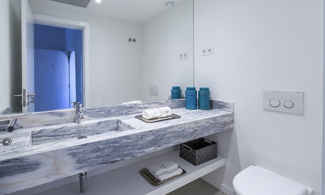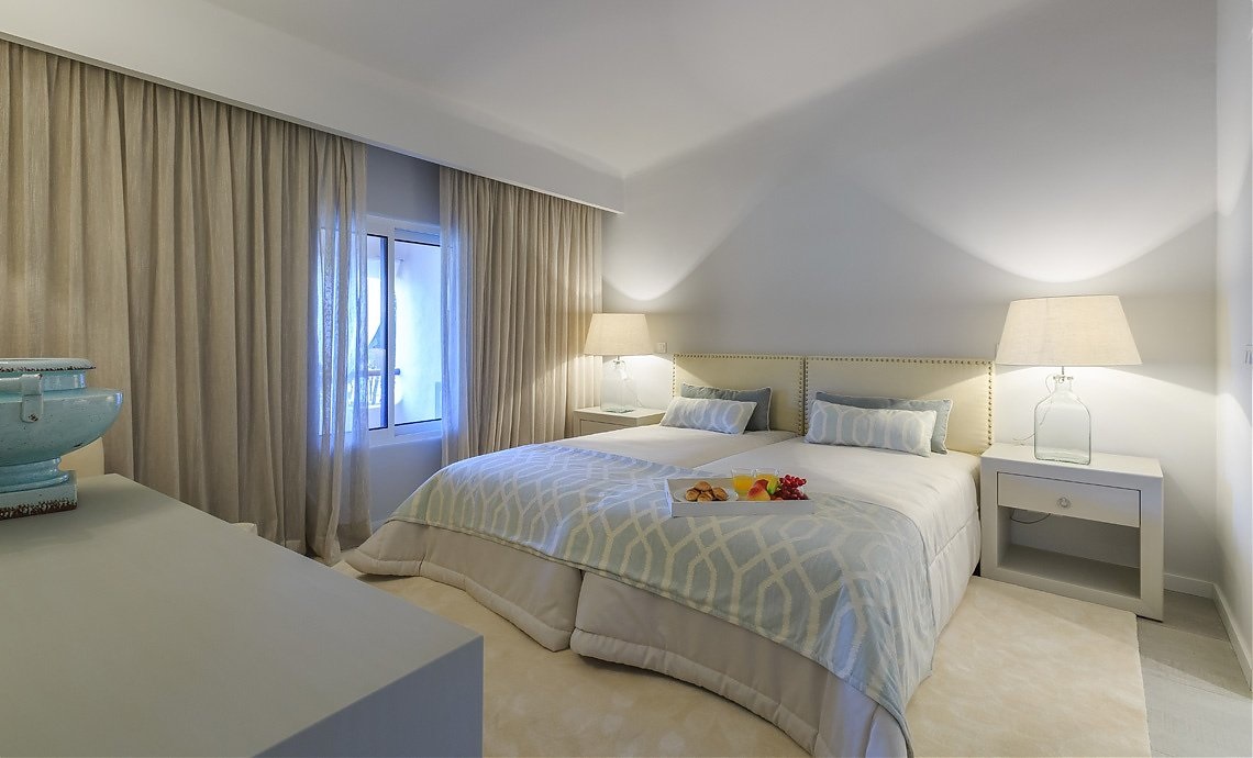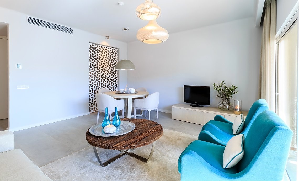 2 bedroom Apartment 125м2 - 4 взрослых+2детей / 5 взрослых с доп.кроватью. Апартаменты с 2 спальнями, 2 ванными комнатами, жилой комнатой со столовой зоной, кухней, есть терраса.