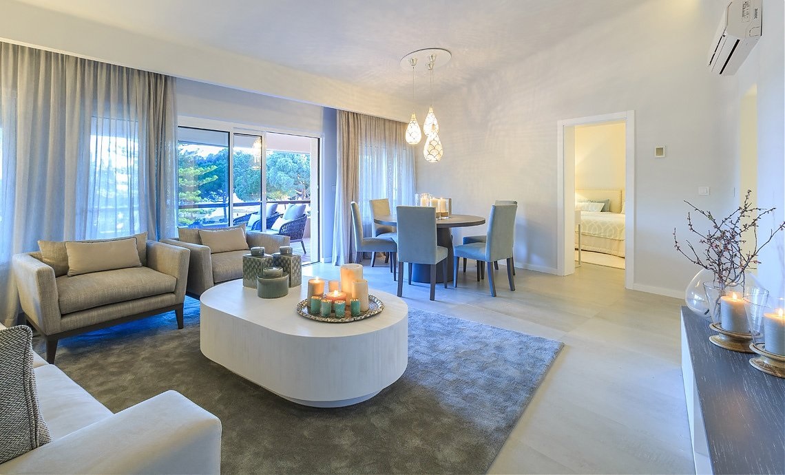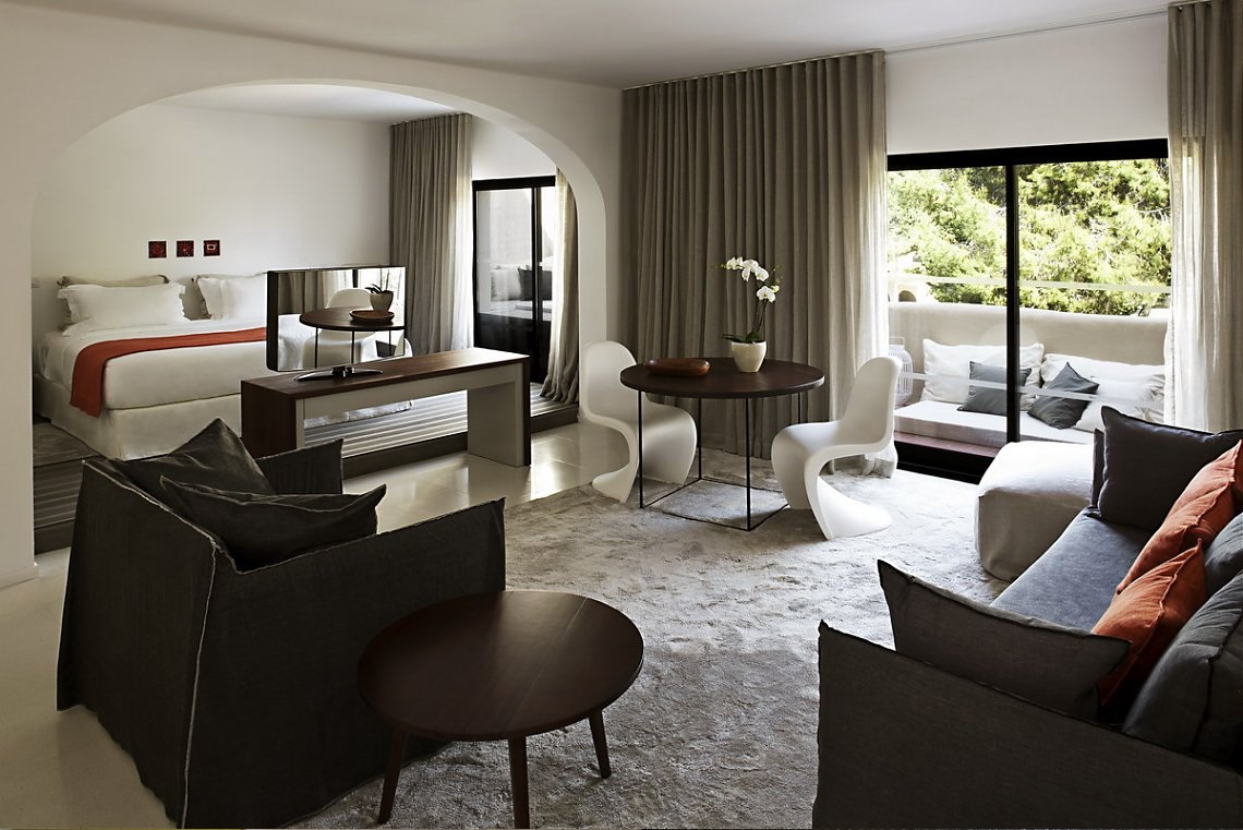 Prestige suite 140м2 - 2взрослых+2детей / 3 взрослых с доп. кроватью. Спальня, гостиная со столовой зоной, кухня, 2 ванны ( одна из ванных комнаи имеет джакузии).С террасы открывается вид на сад и бассейн.