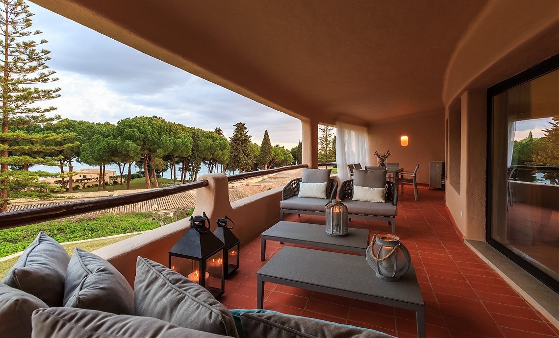 3 bedroom Apartment 186м2 - 6взрослых+2детей / 7 взрослых с доп.кроватью. Три просторные спальни, 3 ванные комнаты, жилая комната со столовой зоной, кухней, есть терраса с видом на сад.