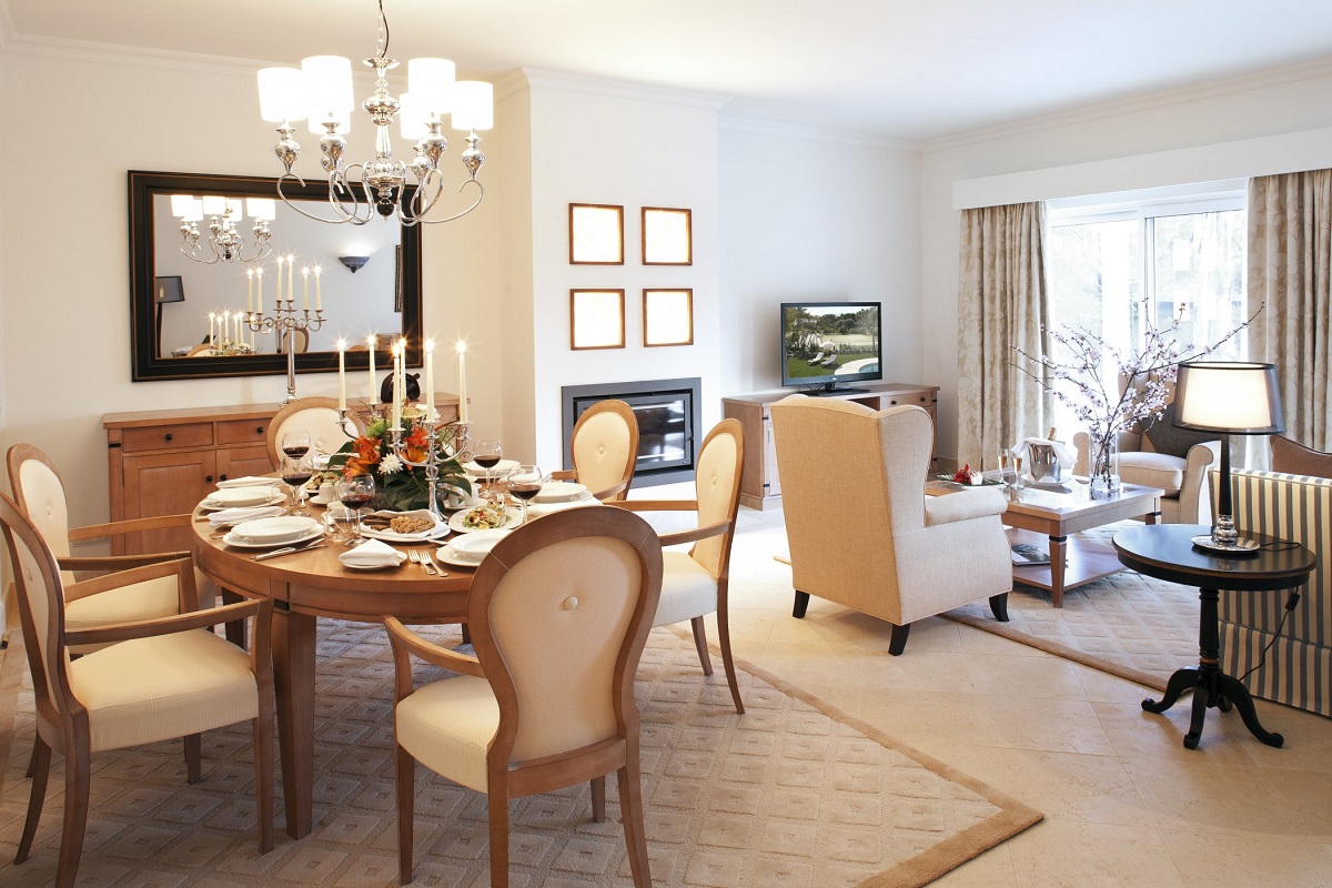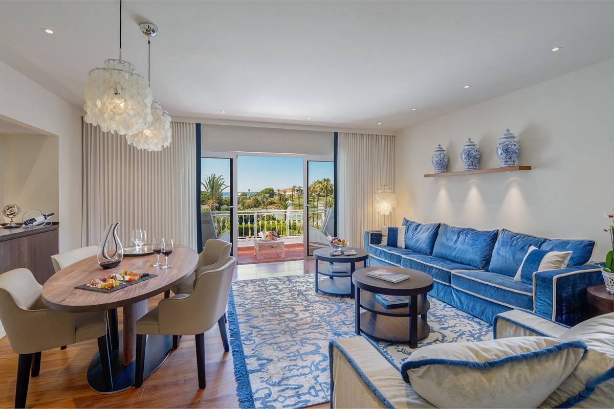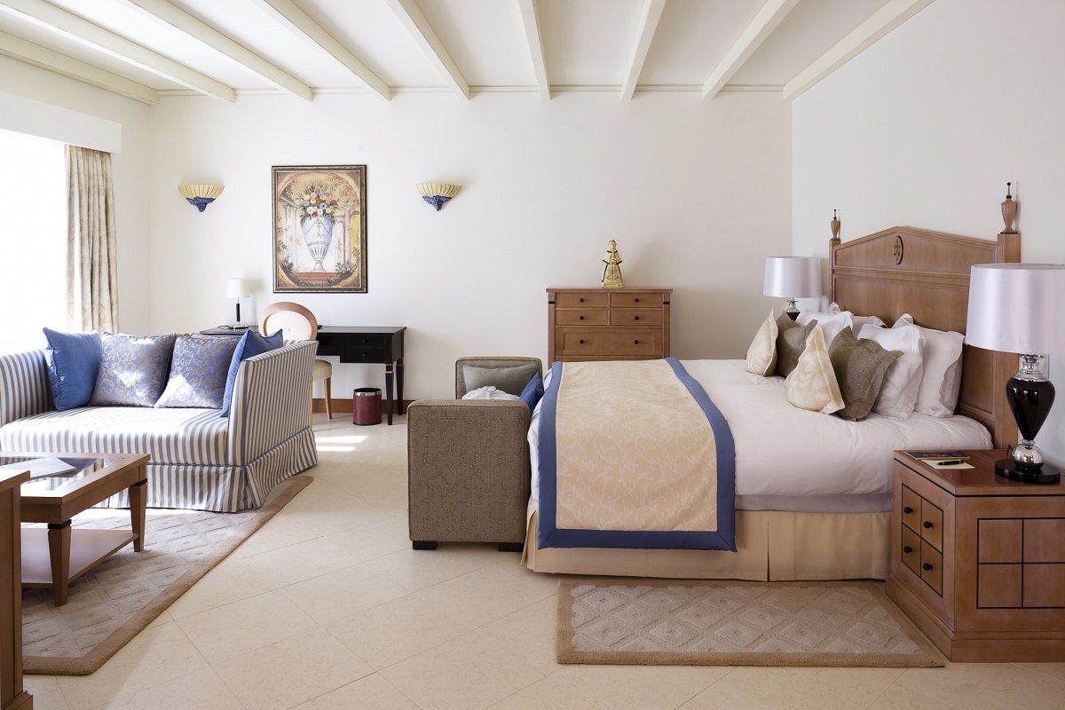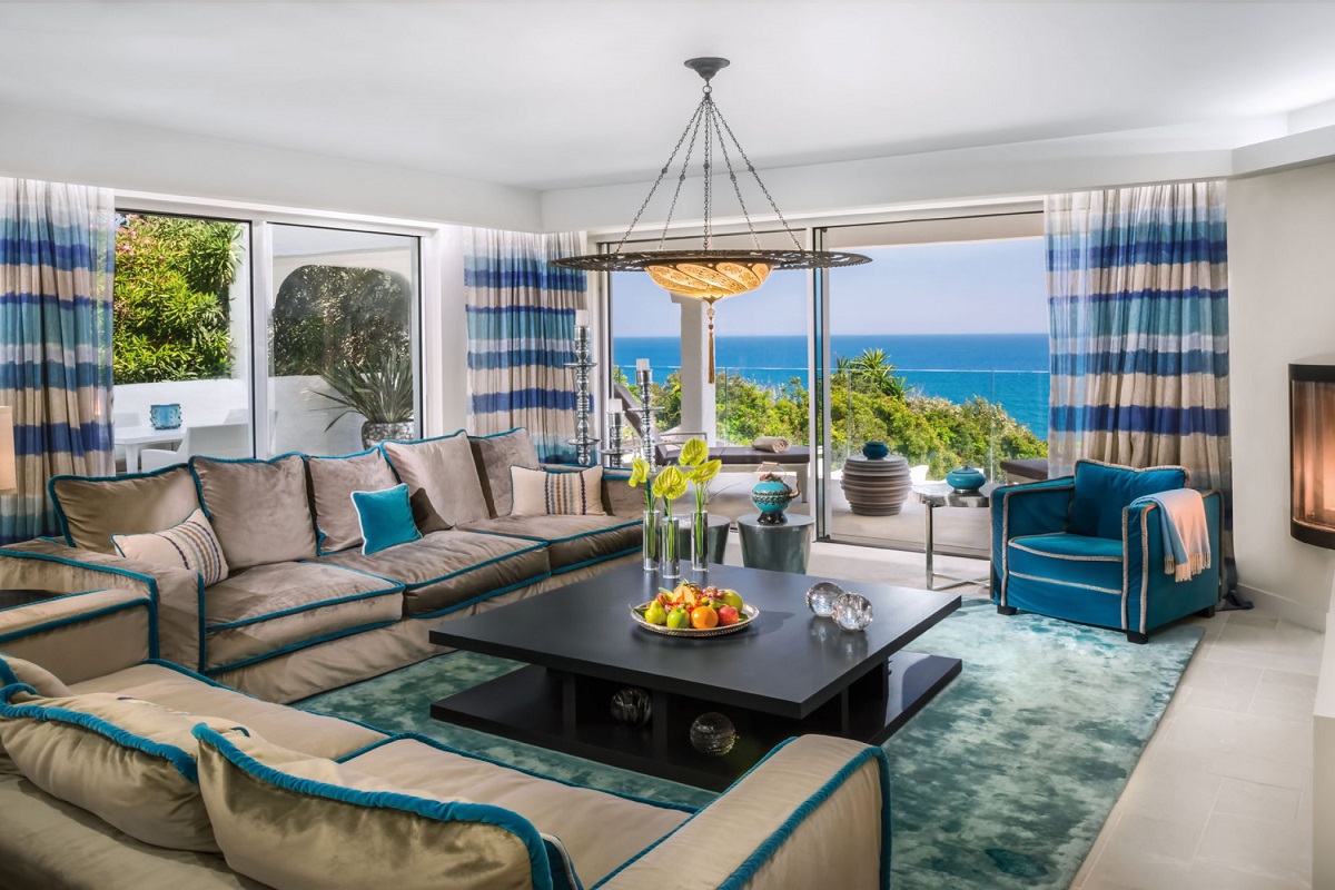 Penthouse suite 105м2 - 2-3 чел.; просторные комнаты на последнем этаже с террасой и видом на океан и сады. Жилая комната с камином, столовой, кухней, спальня с гардеробной, ванной. туалет для гостей. В столовой могут разместиться 6 человек. Особый сервис: персональный дворецкий, повар.