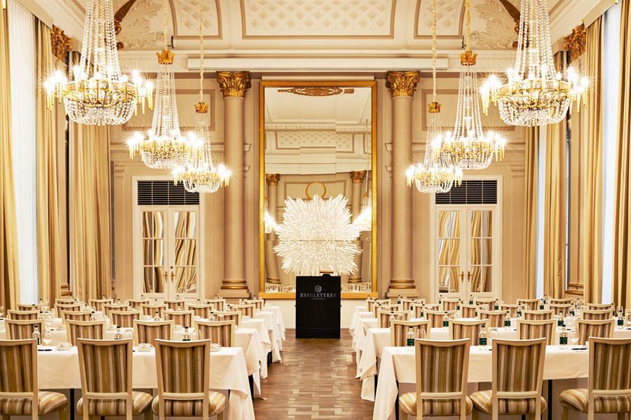 8.  7 залов, в которых за историю отеля неоднократно проводились деловые конференции, свадьбы, гала-концерты, дипломатические встречи и даже вечера с участием королевской семьи. Учитывая большой опыт отеля и команды, можно с полной уверенностью доверить проведение мероприятия любого уровня значимости персоналу D'Angleterre.
