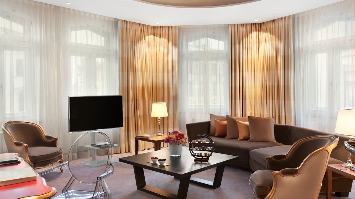 <b><span style="color: #7b3000;">Deluxe Two Bedroom Suite</span></b>: 96 м2. Стильный номер, декорированный по проекту Филиппа Старка, состоит из 2 спален с кроватями king-size, 2 ванных комнат (одна с ванной и душем, другая – с душем), просторной гостиной с видом на Максимилианштрассе. Максимальное размещение - 4 взрослых + 2 детей.<br>