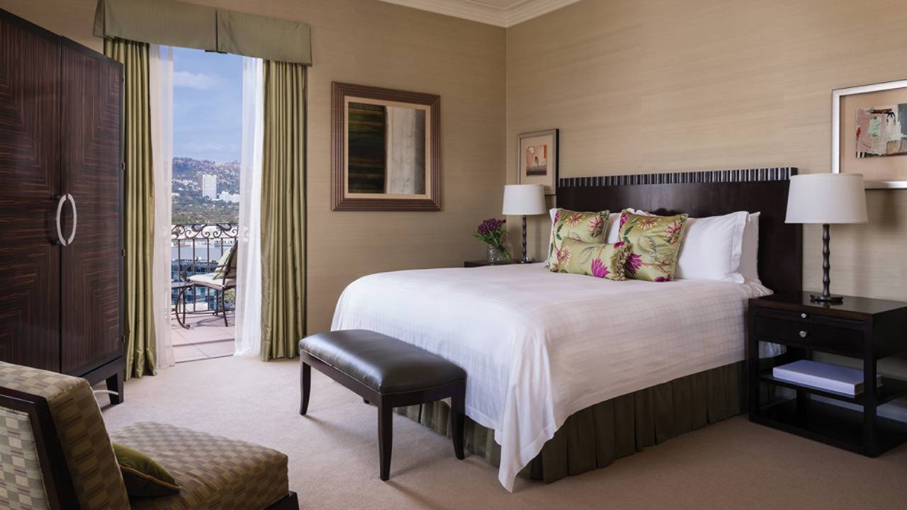 <span style="color: #7b3000;"><b>One-Bedroom Rodeo View Suite</b></span>: 91 м2. Расположен с 2 по 8 этажи в крыле Wilshire, состоит из гостиной, спальни с кроватью king-size, ванной комнаты, гостевой ванной комнаты с душем, вид на Родео-Драйв.<br>