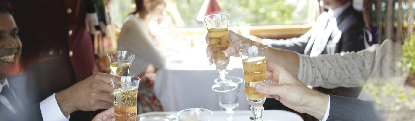 Насладитесь празднично сервированным обедом: сверкающая стеклянная посуда и тонкий фарфор, ослепительно-белые скатерти, изысканная подача семи блюд.