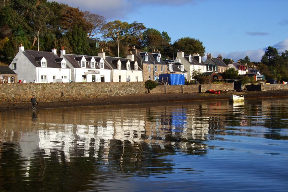 Остановка в Плоктон — рыбацком поселке для водной прогулки и традиционного приветствия в отеле Plockton.<br>