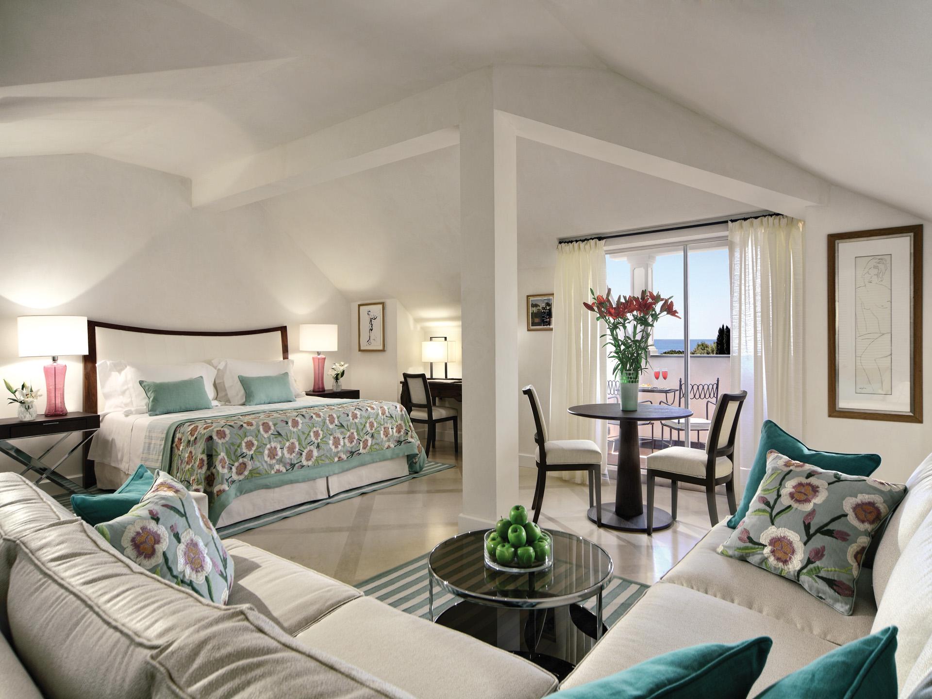 <b><span style="color: #7b3000;">Superior Junior Suite: </span></b>35 м2. Состоит из спальни с кроватью king-size или двумя кроватями twin, гостиной зоны, ванной комнаты с отделкой из мрамора. Вид на море.<br>