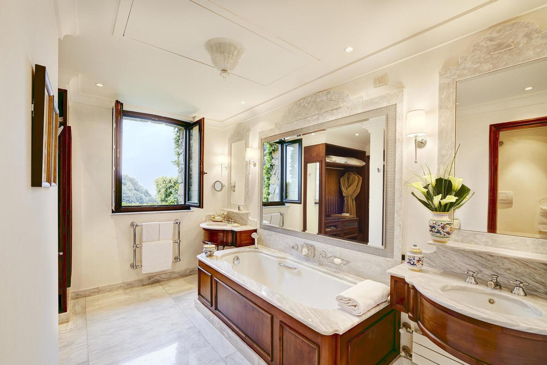 <b><span style="color: #7b3000;">Deluxe Junior Suite: </span></b>40 м2. Номер расположен в окружении живописного сада и оборудован французскими дверями с выходом на террасу, с которой открывается вид на монастырь и итальянские сады. Состоит из спальни с кроватью king-size или двумя кроватями twin, с зоной отдыха, ванной комнаты с мраморной отделкой с ванной и душевой кабиной. <br>