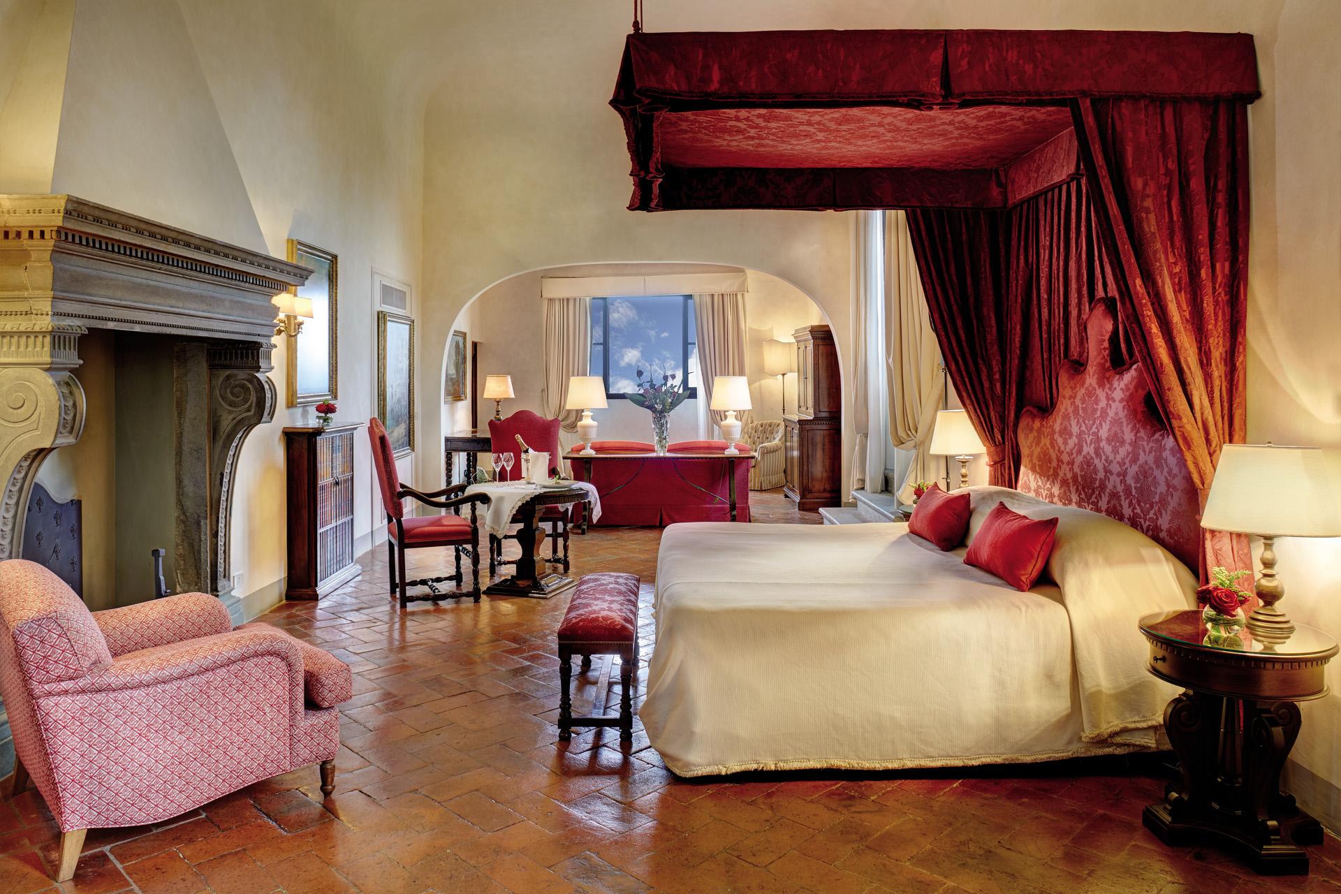 <b><span style="color: #7b3000;">Michelangelo Suite: </span></b>70 м2. Состоит из спальни с кроватью king-size под пологом или двумя кроватями twin, с гостиной зоной с камином, ванной комнаты с ванной и душевой кабиной, с видом на Флоренцию, долину Arno и холмы Chianti. <br>