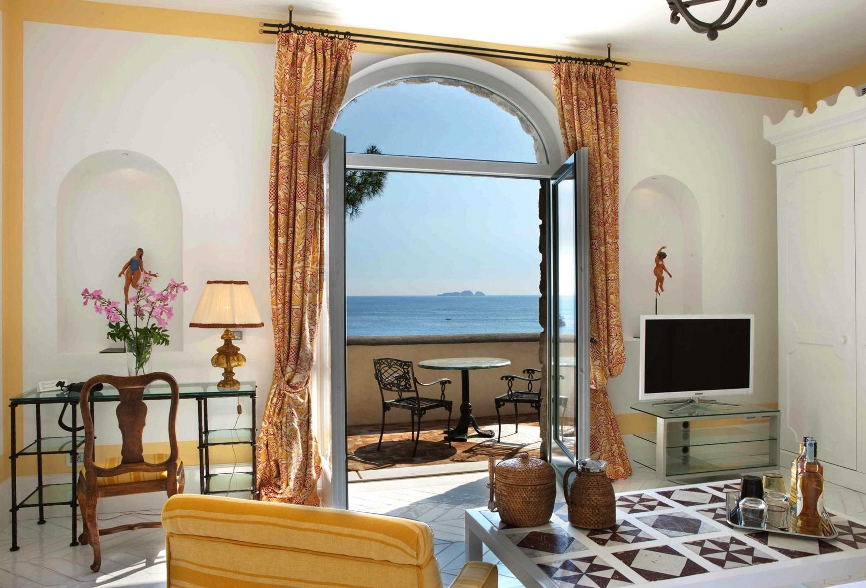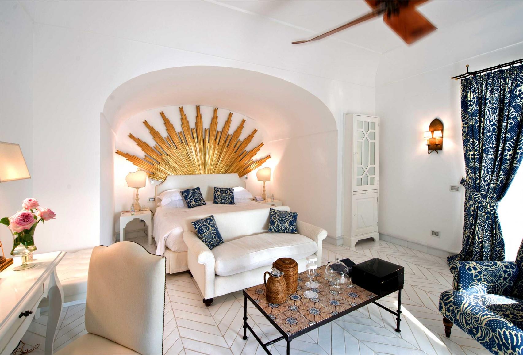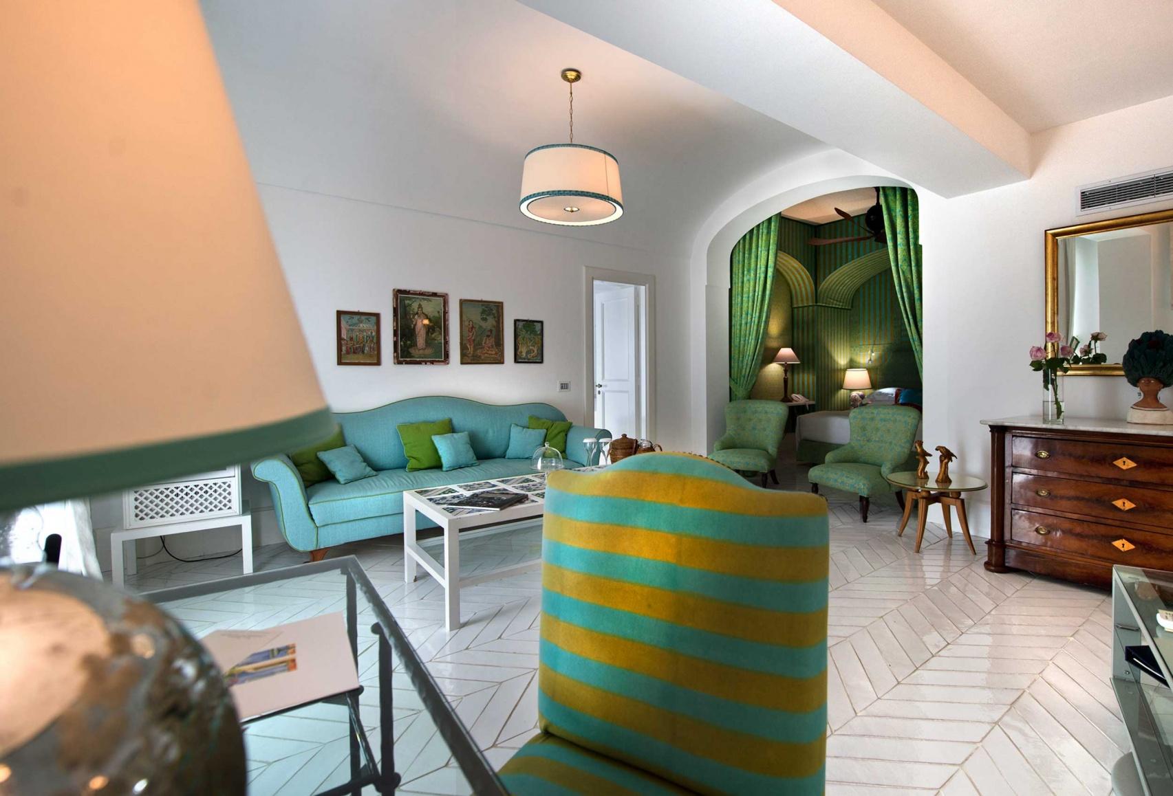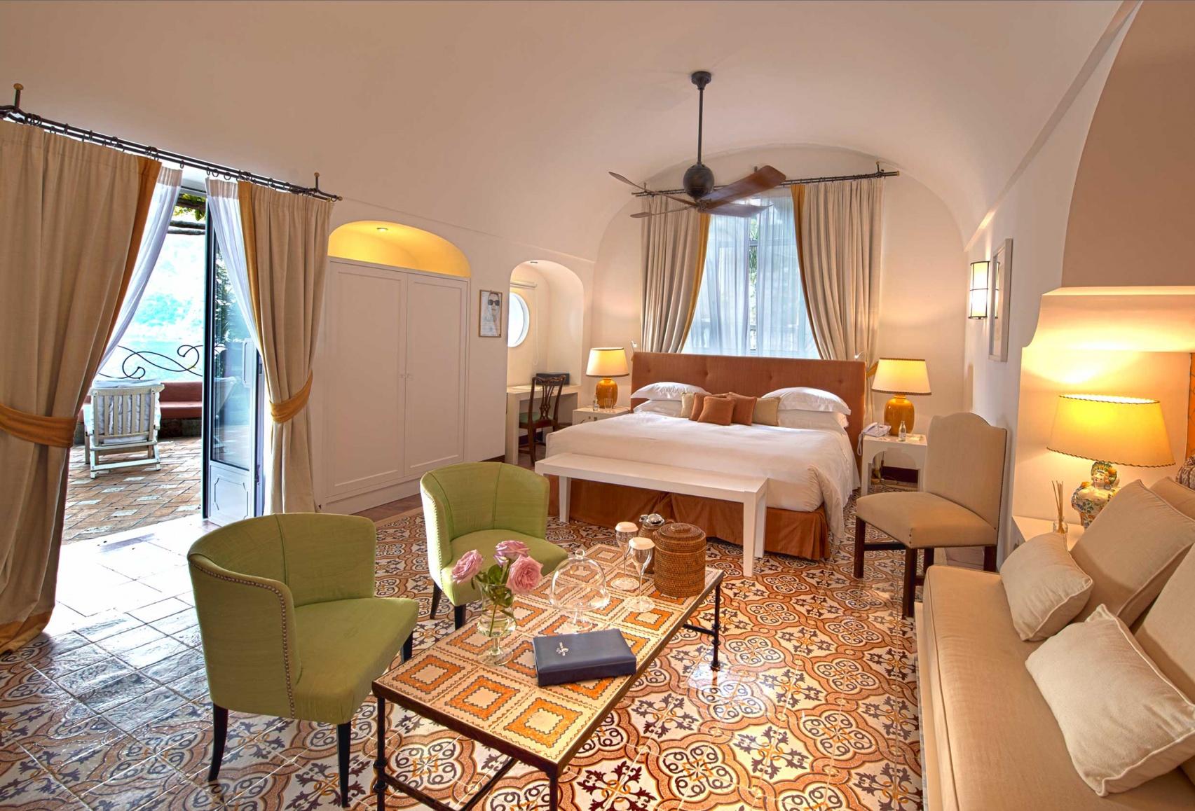 Massine Suite: номер назван в честь прославленного русского балетмейстера Леонида Мясина и выдержанному в спокойных оттенках с элементами традиционного стиля Неаполя и Сорренто XIX века: расписными потолками и полами, выложенными многоцветной майоликой. Номер украшен светильниками и люстрами ручной работы, мрамором и мозаикой, а также работами местного художника Паоло Сандулли. Двухуровневый номер состоит из изящной гостиной, большой спальни, ванной комнаты в величественном римском стиле, откуда открывается потрясающий вид на Позитано, небольшого балкона с видом на море.