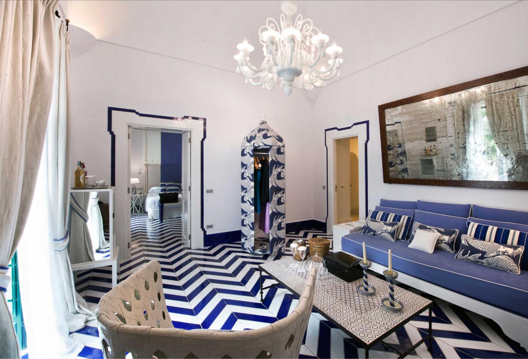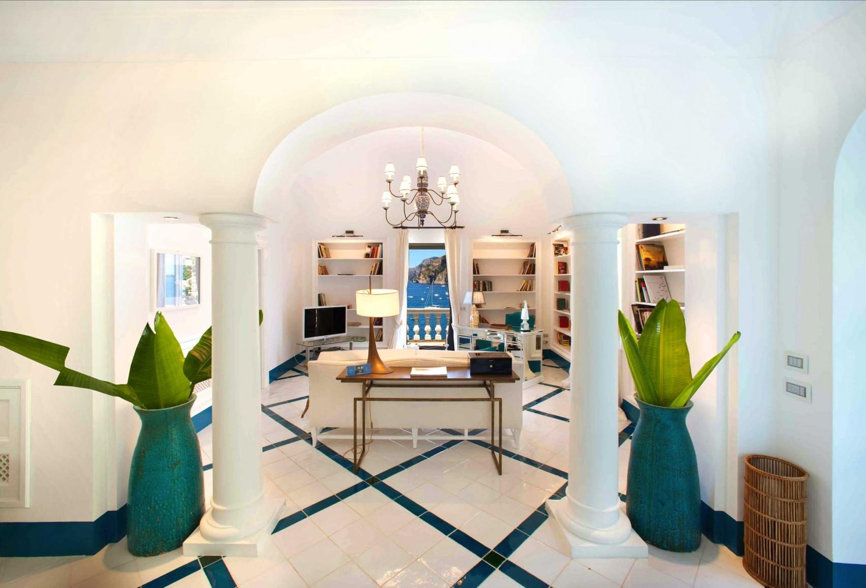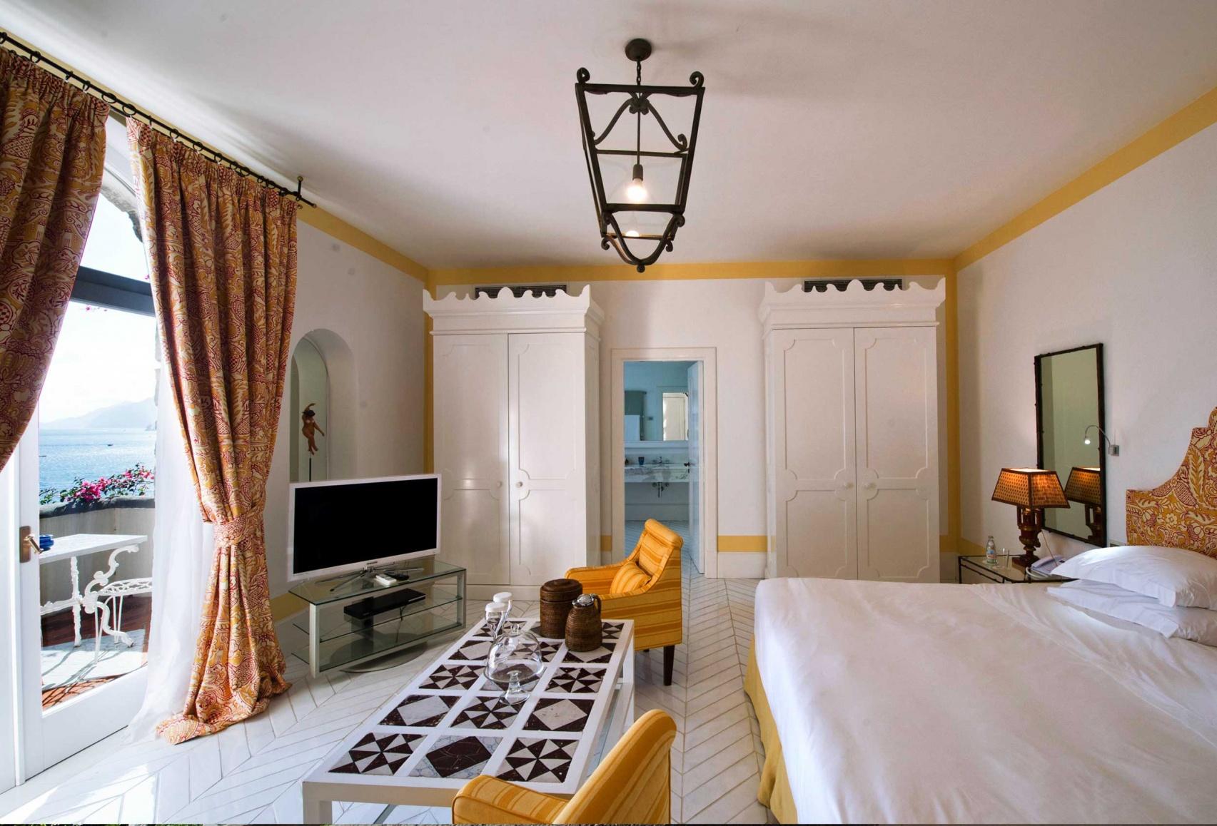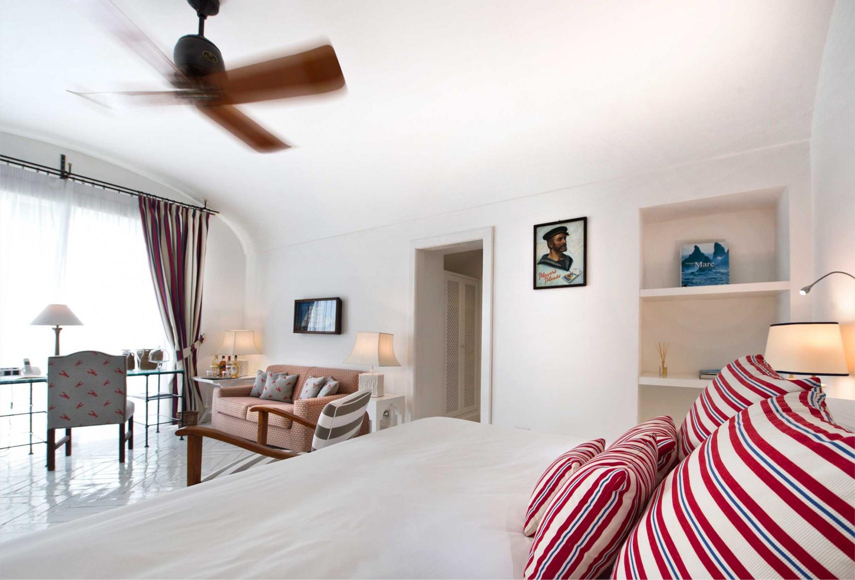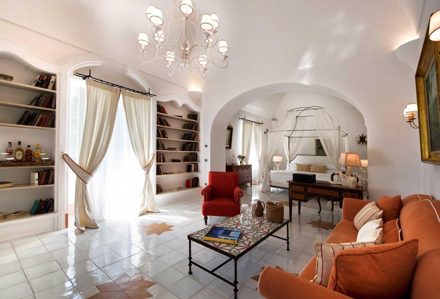 Massine Suite: номер назван в честь прославленного русского балетмейстера Леонида Мясина и выдержанному в спокойных оттенках с элементами традиционного стиля Неаполя и Сорренто XIX века: расписными потолками и полами, выложенными многоцветной майоликой. Номер украшен светильниками и люстрами ручной работы, мрамором и мозаикой, а также работами местного художника Паоло Сандулли. Двухуровневый номер состоит из изящной гостиной, большой спальни, ванной комнаты в величественном римском стиле, откуда открывается потрясающий вид на Позитано, небольшого балкона с видом на море.