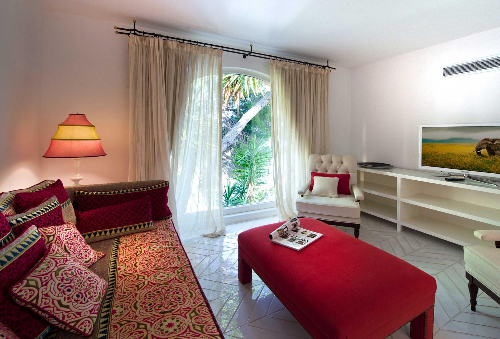 Nureyev Suite: номер получил свое название в честь одного из самых известных русских танцовщиков XX века – Рудольфа Нуриева. Номер оформлен в традиционном мавританском стиле, который очень любил сам Нуриев. Среди элементов декора - античное Венецианское зеркало и лампы, украшающие спальню. В оформлении номера преобладают оттенки белого, синего и черного. Состоит из спальни, отдельной гостиной комнаты, ванной комнаты с отдельным душем и отделанной мозаикой гидромассажной ванной, террасы с видом на море.