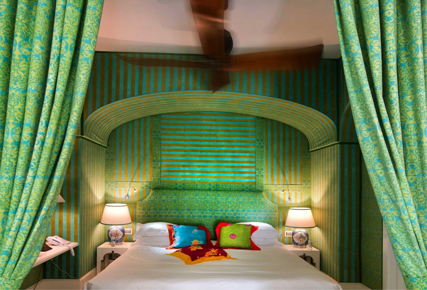 Turandot Suite: номеру присущ восточный стиль, для которого характерен альков, отгороженный драпированным занавесом с традиционными мотивами. Индийские коллажи XIX века, изображающие любовные сцены, создают романтическую атмосферу номера. Состоит из спальни с кроватью, расположенной в алькове, просторной гостиной зоны, ванной комнаты, террасы с выходом в сад, откуда открывается захватывающий вид на море.