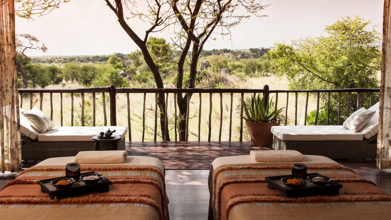 Two-Bedroom Villa: 172 м2. Расположена на возвышении, состоит из 2 спален (с кроватями king-size или с кроватью king-size и двумя кроватями twin), гостиной с обеденной зоной, кухни, 2 ванных комнат, гостевой туалетной комнаты, душей на открытом воздухе, просторной террасы с бассейном, зоной отдыха и панорамным видом на Серенгети. Размещение – 4 взрослых или 2 взрослых + 3 ребенка. Гостям виллы предоставляются услуги дворецкого (по запросу).