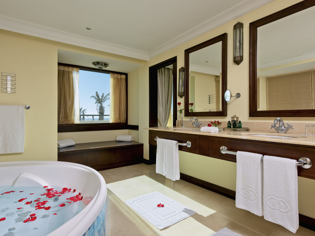 Prestige Suite 60м2 - просторный номер, с гостиной зоной, 2 ванными; вид на бассейн и сад.