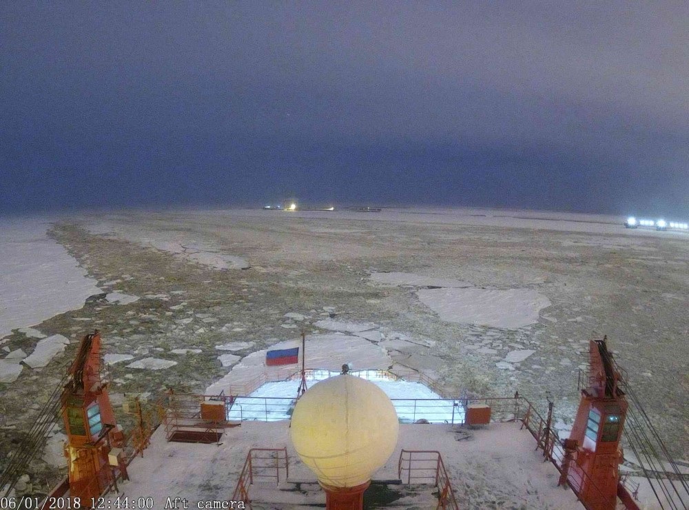 Все дни "50 лет Победы" будет ломать летние арктические льды. Состояние ледового покрытия во многом зависит от прошлых сезонов. Согласно наблюдениям NASA, летом-осенью 2017г. площадь морского ледового покрытия была ниже среднего, а зимой 2018 морской лед был сильно взломан и раздроблен из-за теплой зимы.