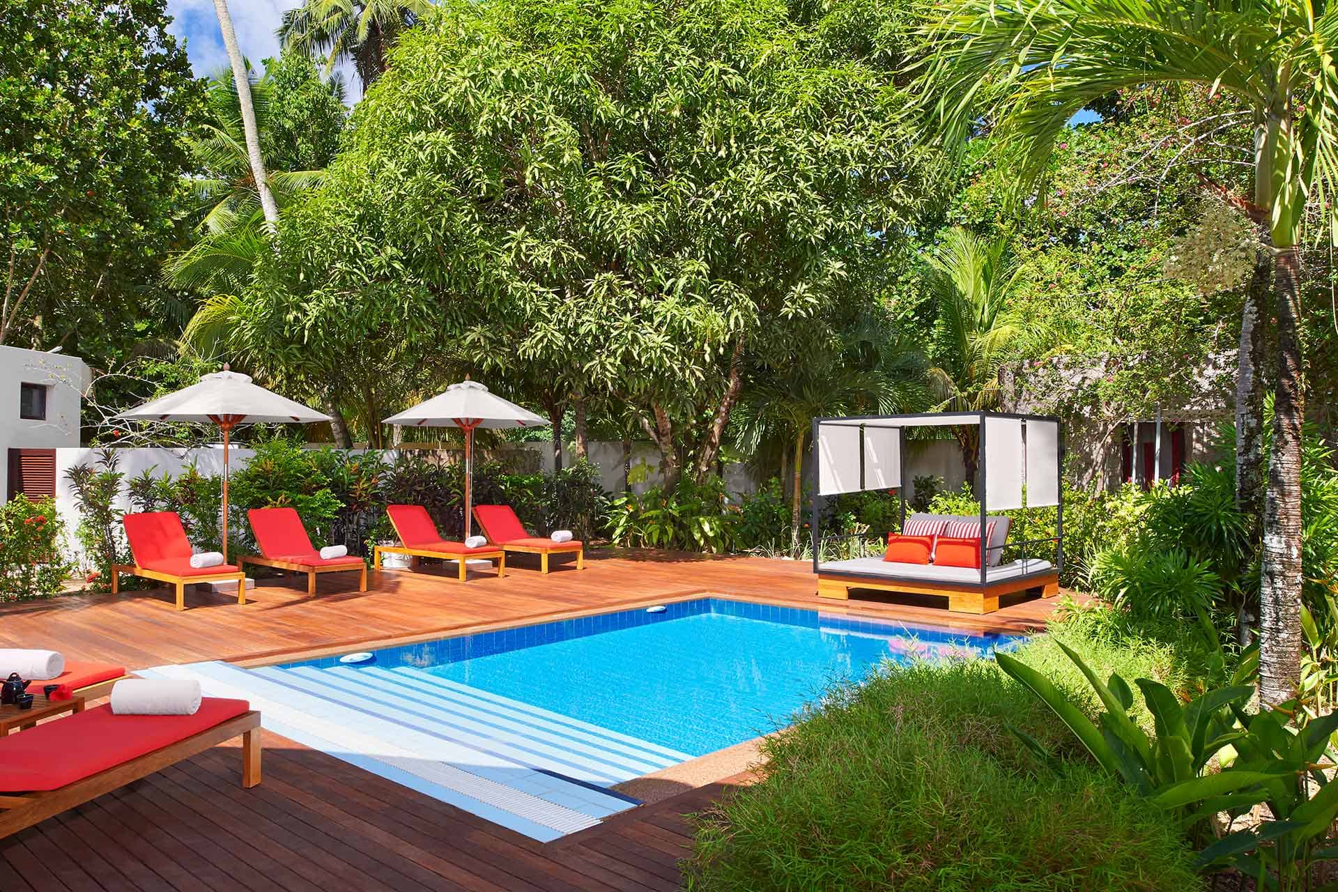 Avani Garden View Room: 32-36 м2. Расположен на 1 или 2 этаже, состоит из спальни с двуспальной кроватью или двумя кроватями twin, ванной комнаты с ванной и душем, балкона или террасы с видом на сад и бассейн. Размещение – 2 взрослых + 1 ребенок.